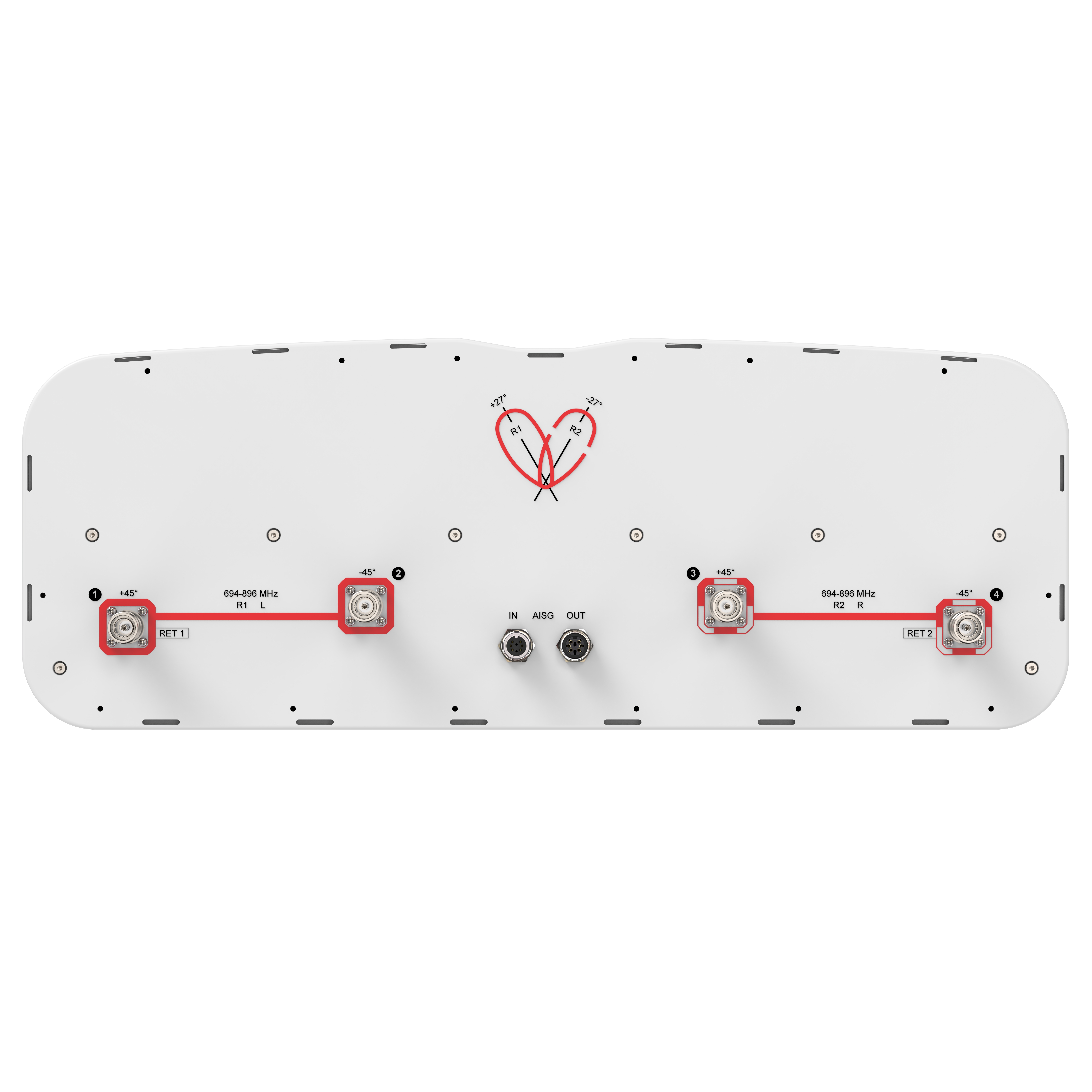 - Integrated Internal Remote Electrical Tilt (RET), with independent control of electrical tilt on both beams