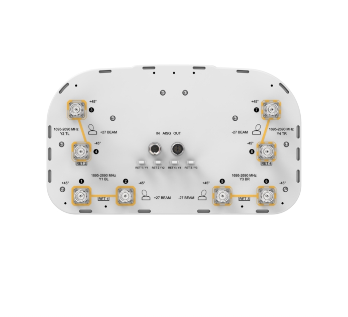8-port multibeam antenna, 8x 1695–2690 MHz, 4x 33° HPBW, 4x RET, has tilt scales