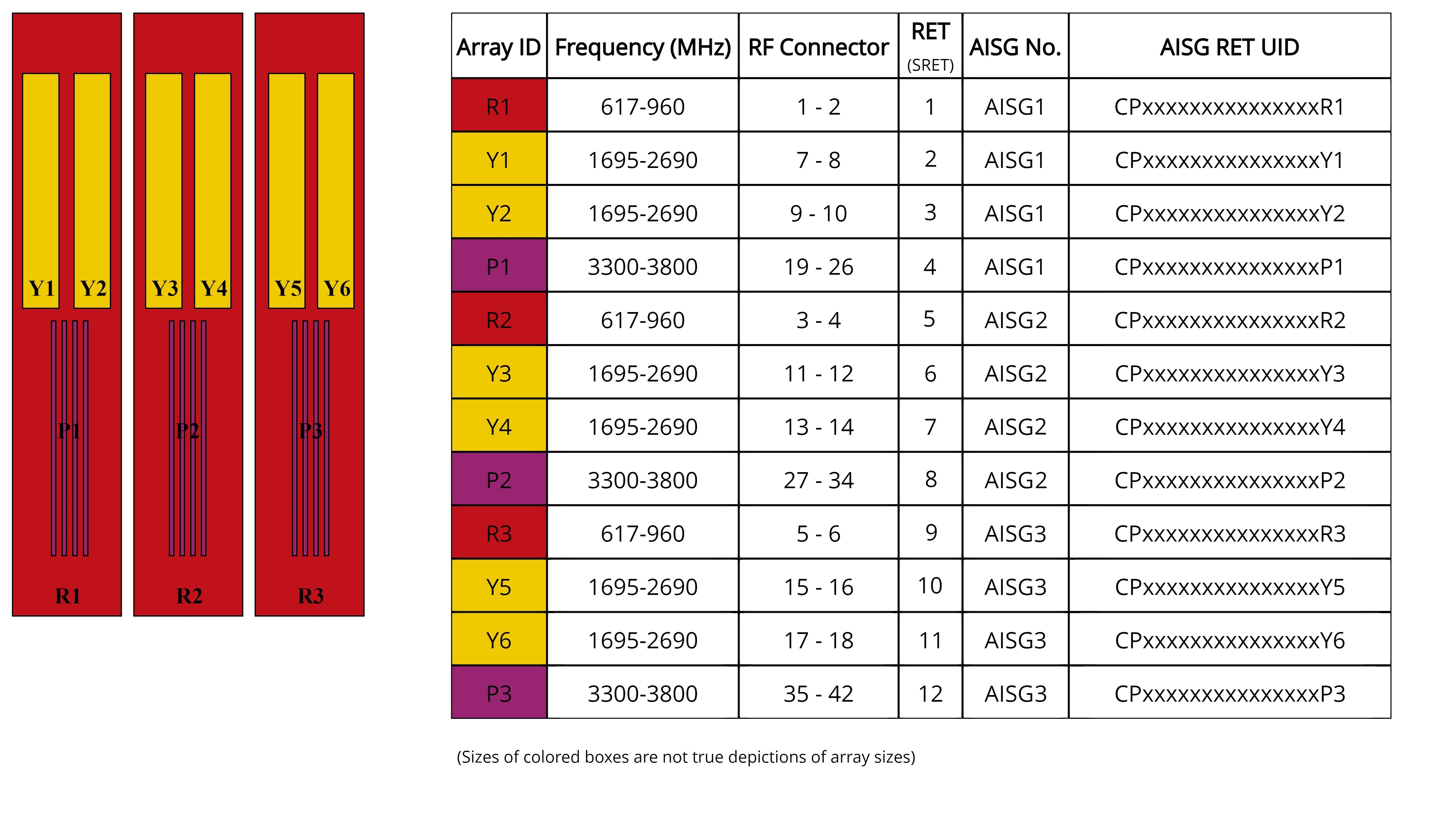 | Internal RET | High band (3) | Low band (3) | Mid band (6) |