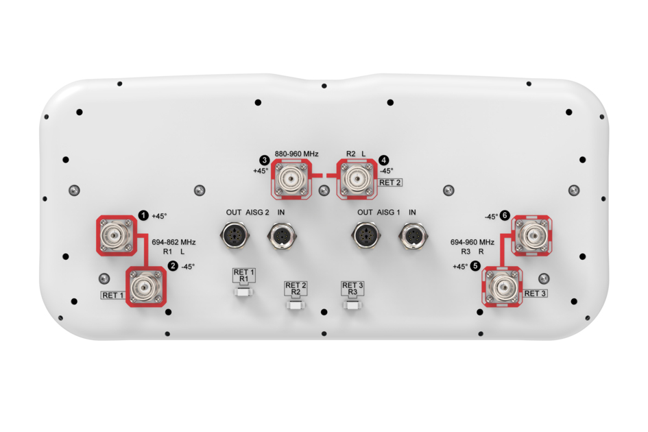 6-port sector antenna, 2x 694-862, 2x 880-960, 2x 694-960, 65° HPBW, 3 x RET