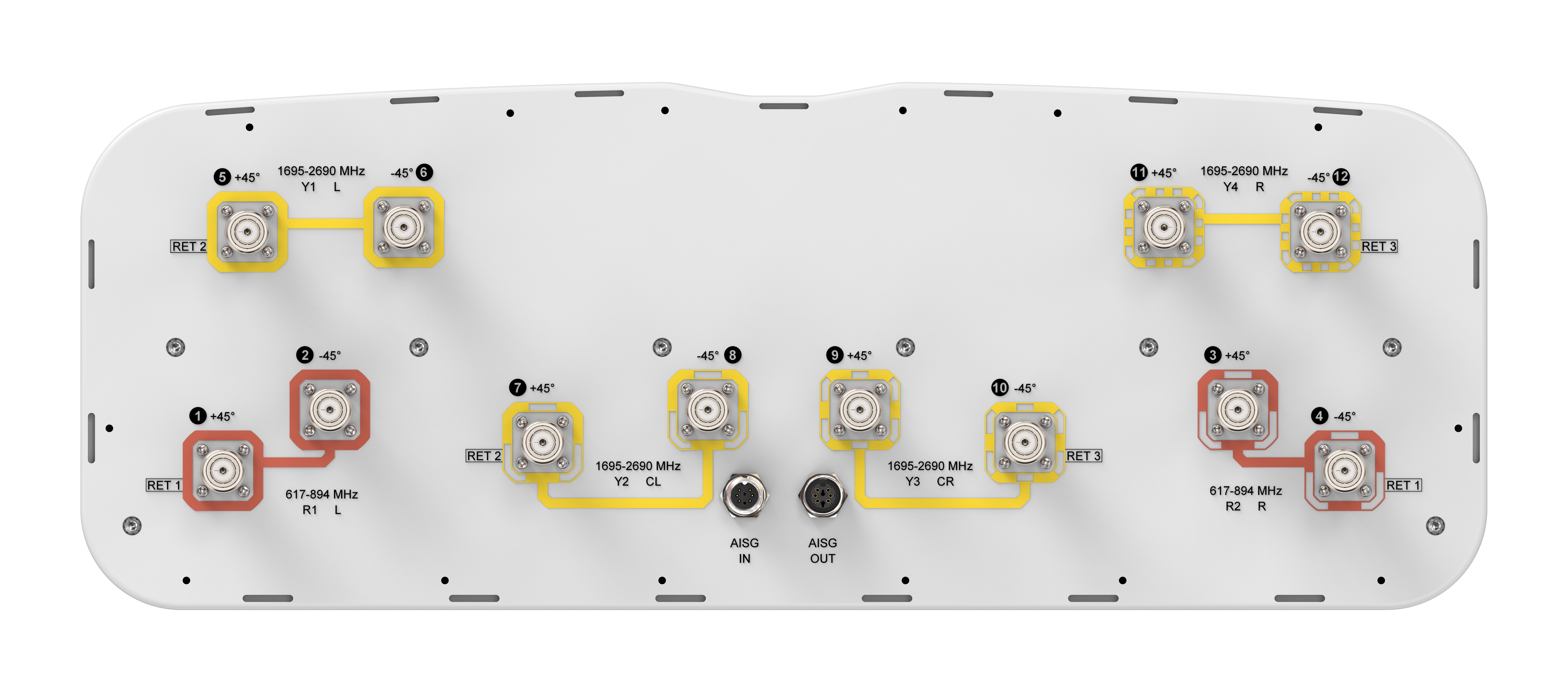 12-port sector antenna, 4x 617-894 and 8x 1695–2690 MHz, 65° HPBW, 3x RET