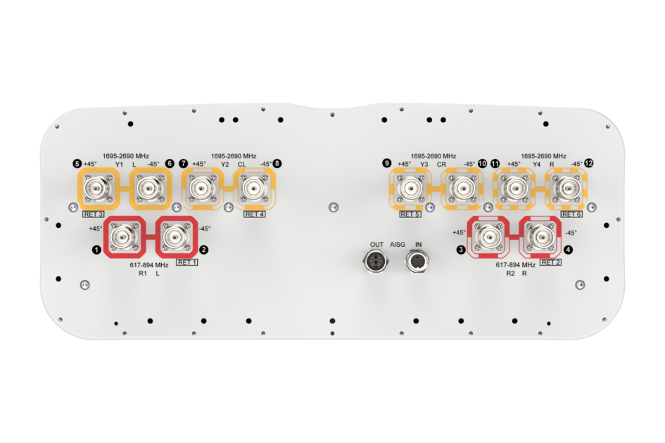 12-port sector antenna, 4x 617-894 and 8x 1695–2690 MHz, 65°HPBW, 6x RET