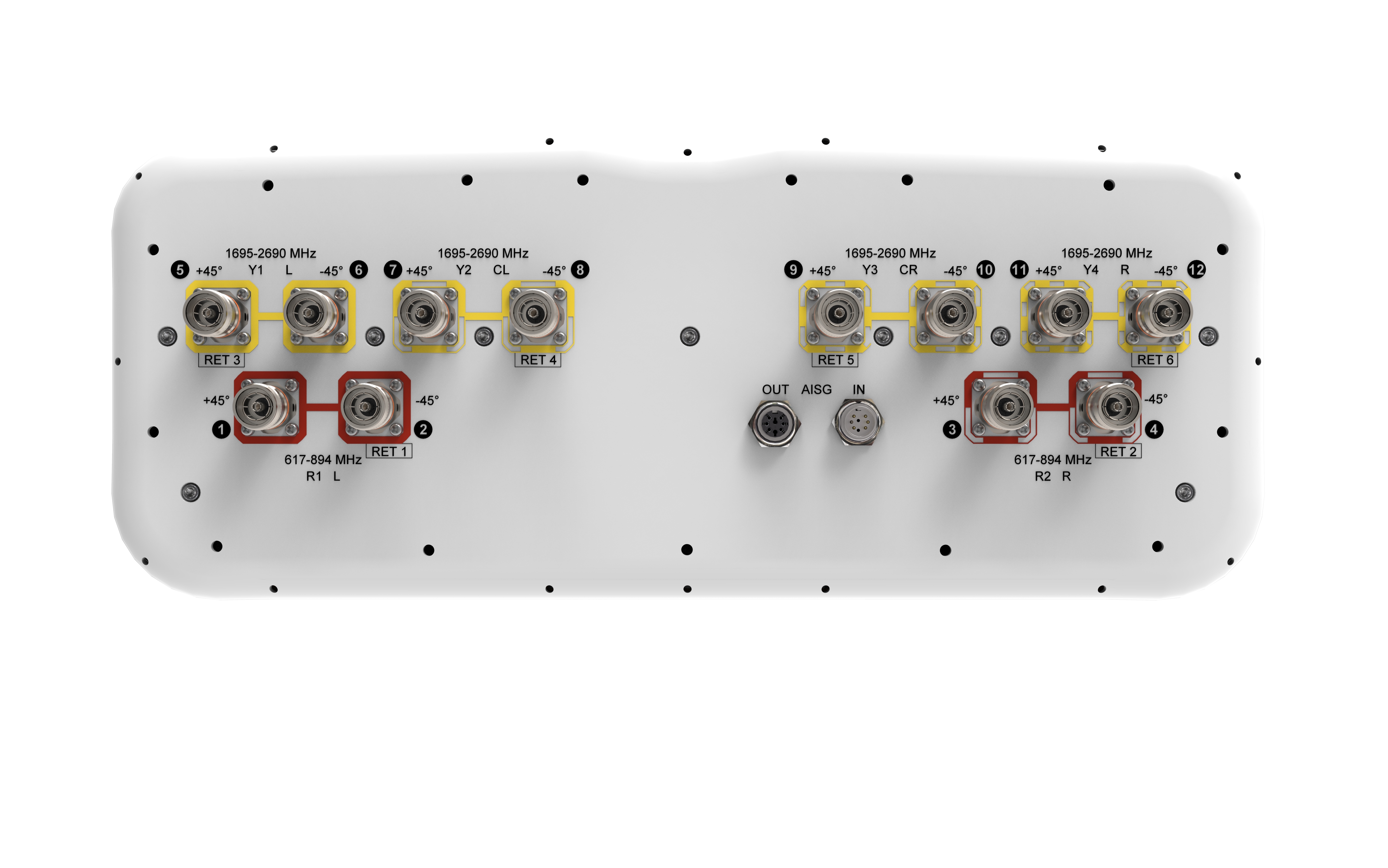 12-port sector antenna, 4x 617-894 and 8x 1695-2690 MHz, 65° HPBW, 6x RET