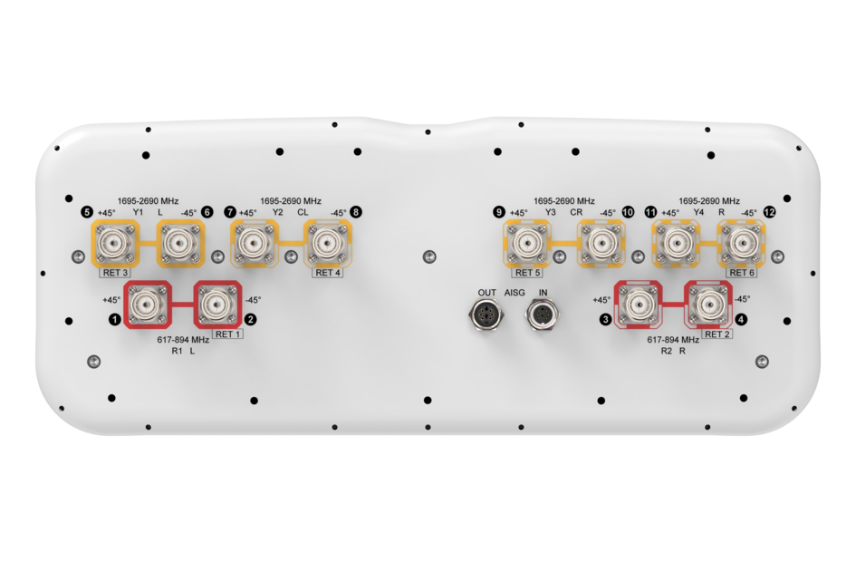 12-port sector antenna, 4x 617-894 and 8x 1695–2690 MHz, 65°HPBW, 6x RET
