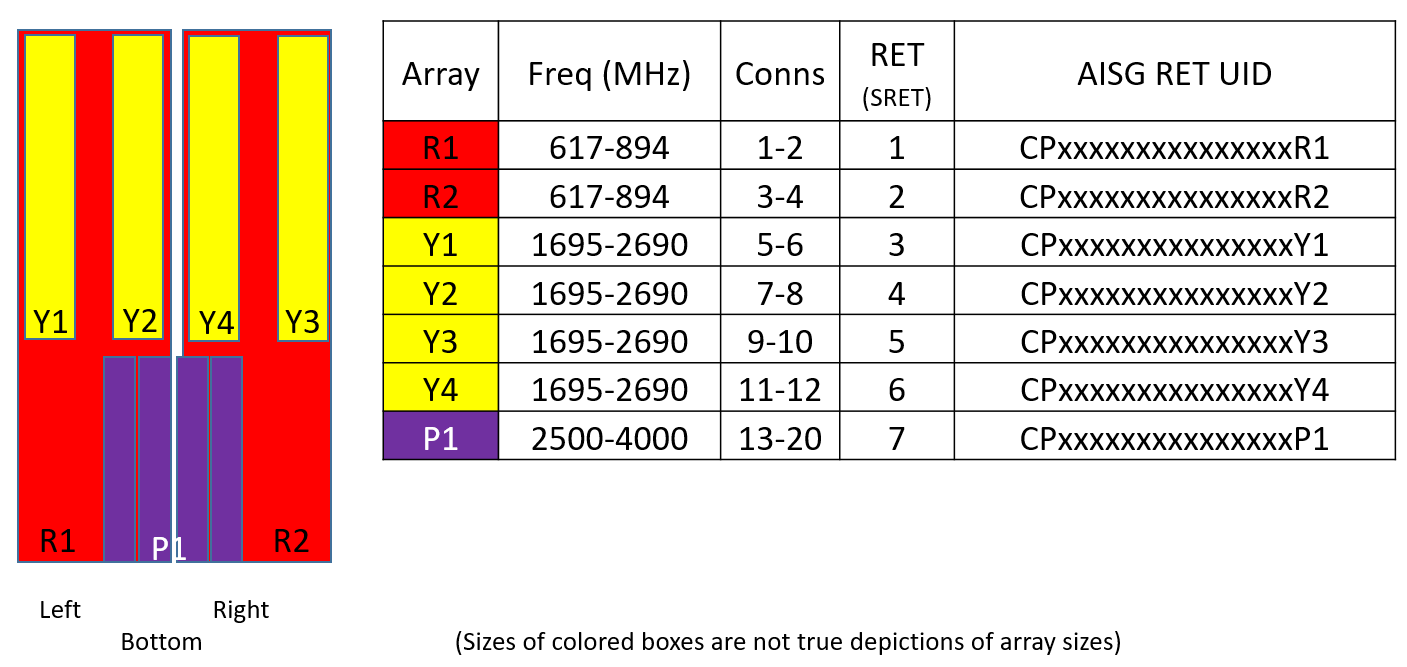 | Internal RET | High band (1) | Low band (2) | Mid band (4) |
