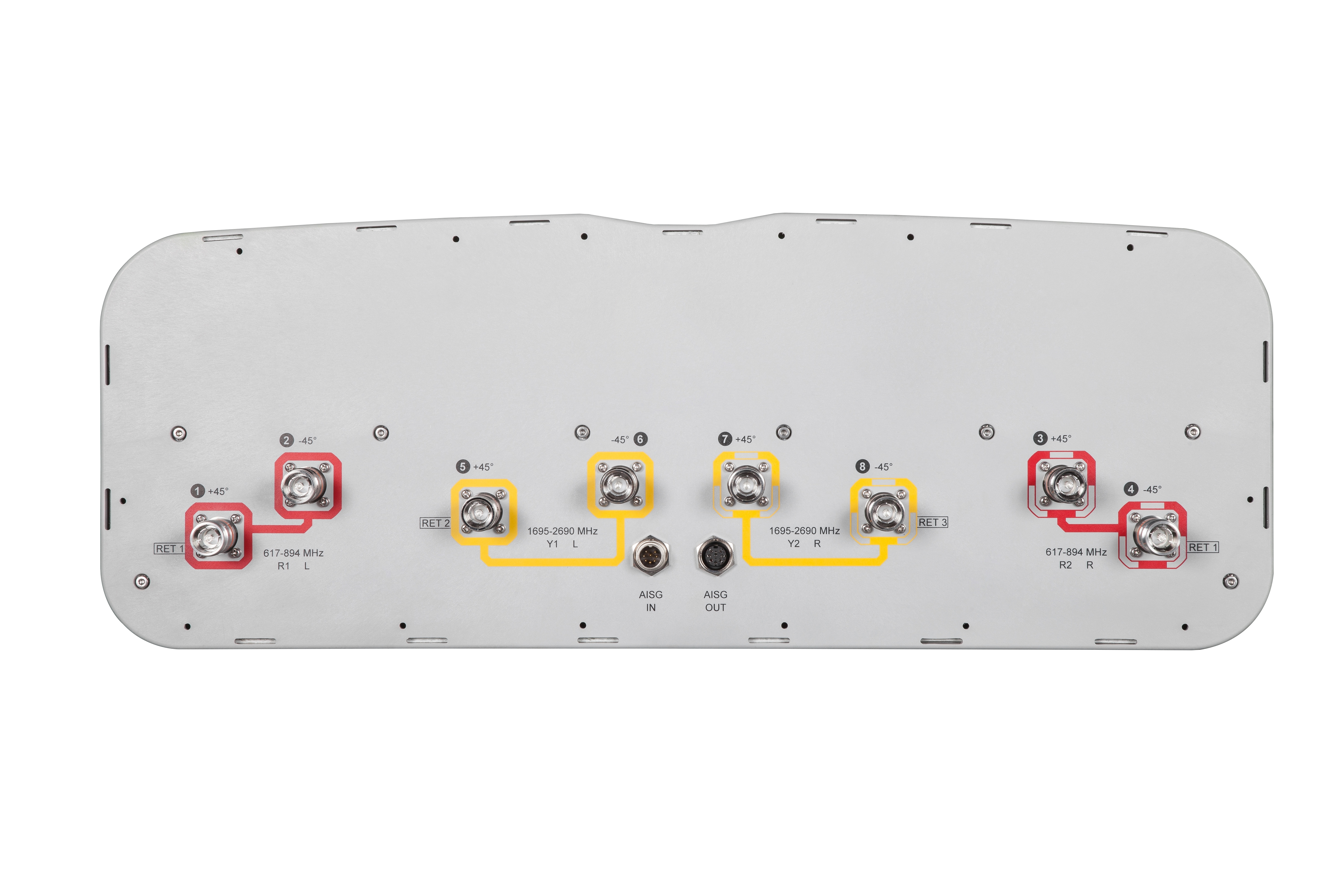 8-port sector antenna, 4x 617-894 and 4x 1695–2690 MHz, 65° HPBW, 3x RET