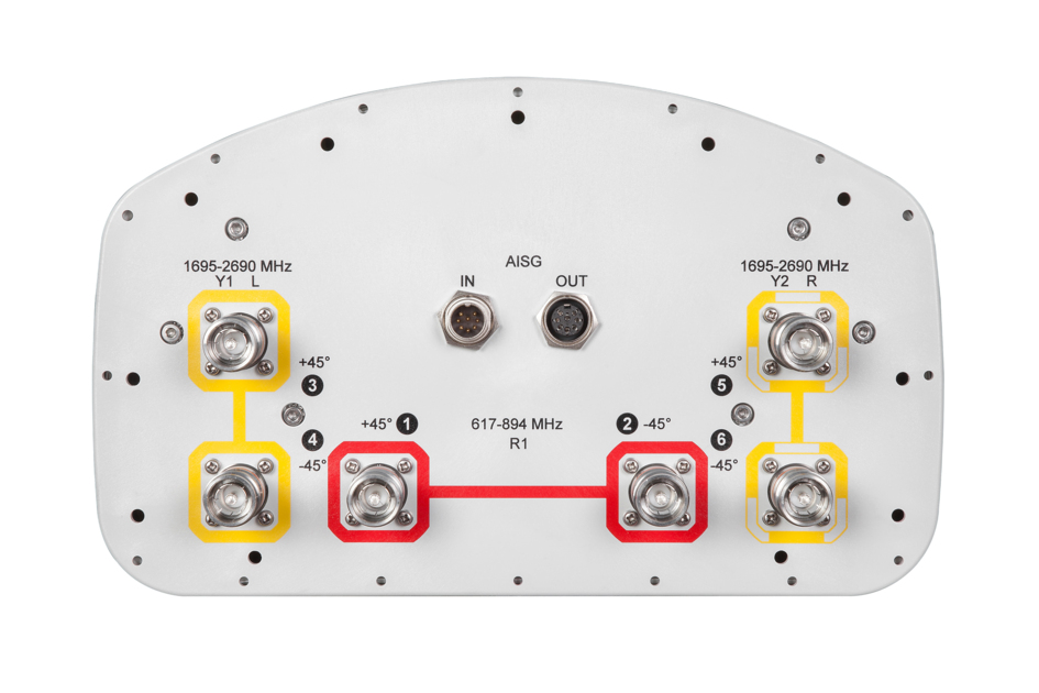 6-port sector antenna, 2x 617-894 and 4x 1695–2690 MHz, 65° HPBW, 3x RET, 600 MHz-Ready Antenna Technology