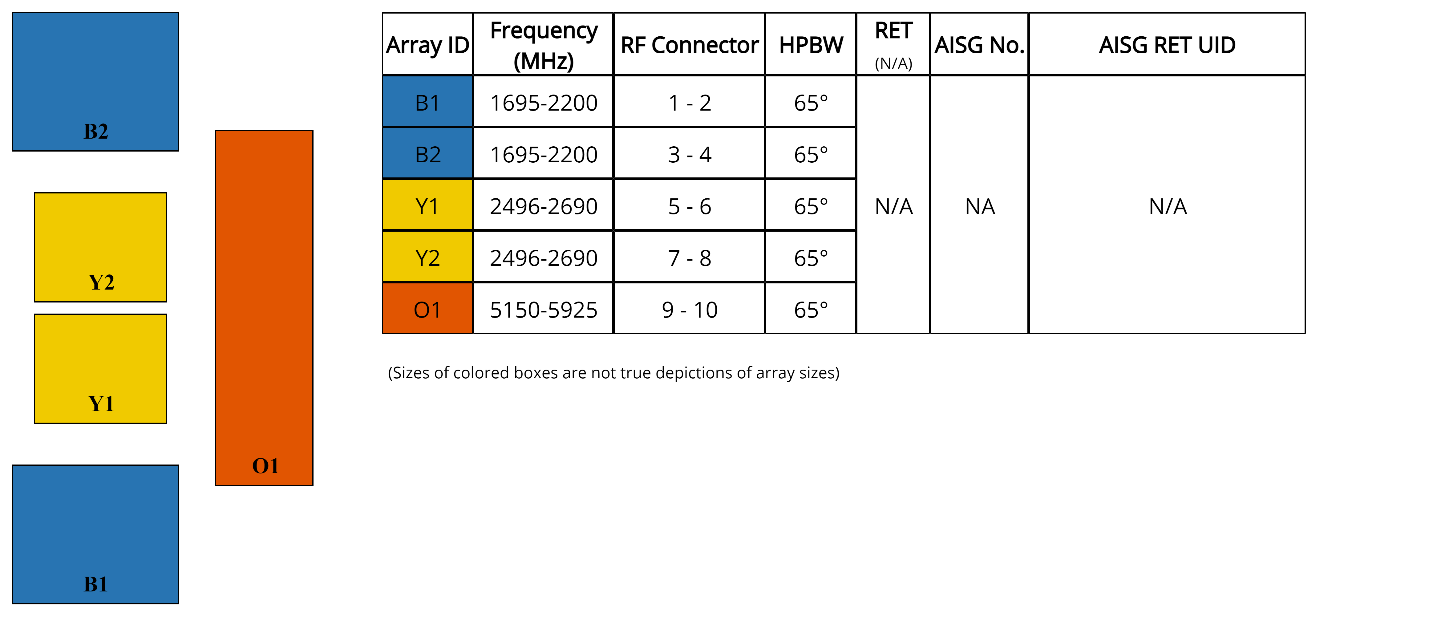 | Operating Frequency Band | 1695 – 2200 MHz | 2496 – 2690 MHz | 5150 – 5925 MHz |