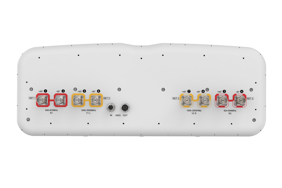 - One RET for 700MHz, one RET for 850MHz, and one RET for both high bands to ensure same tilt level for 4x Rx or 4x MIMO