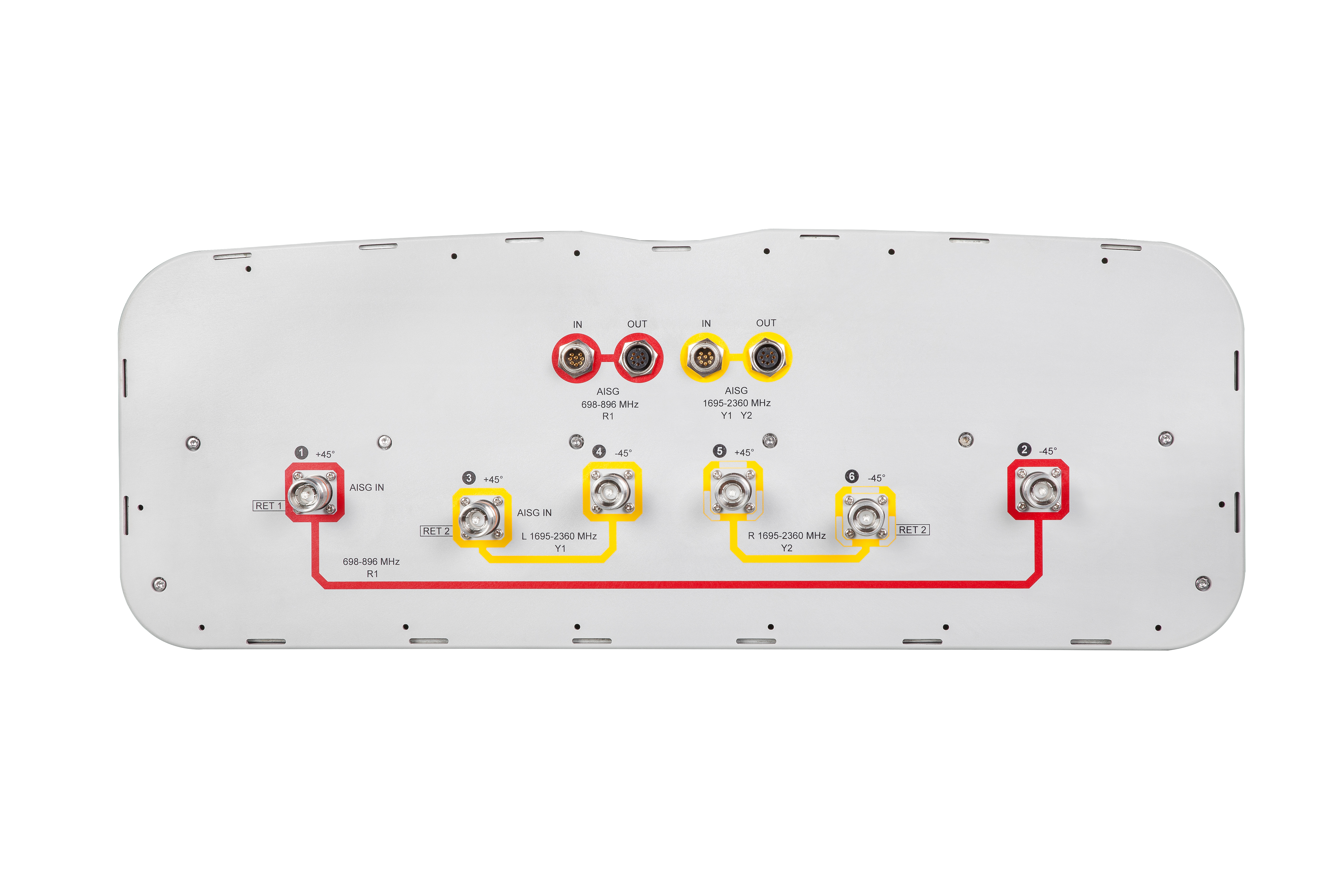 - Separate RS-485 RET input/output for low and high band