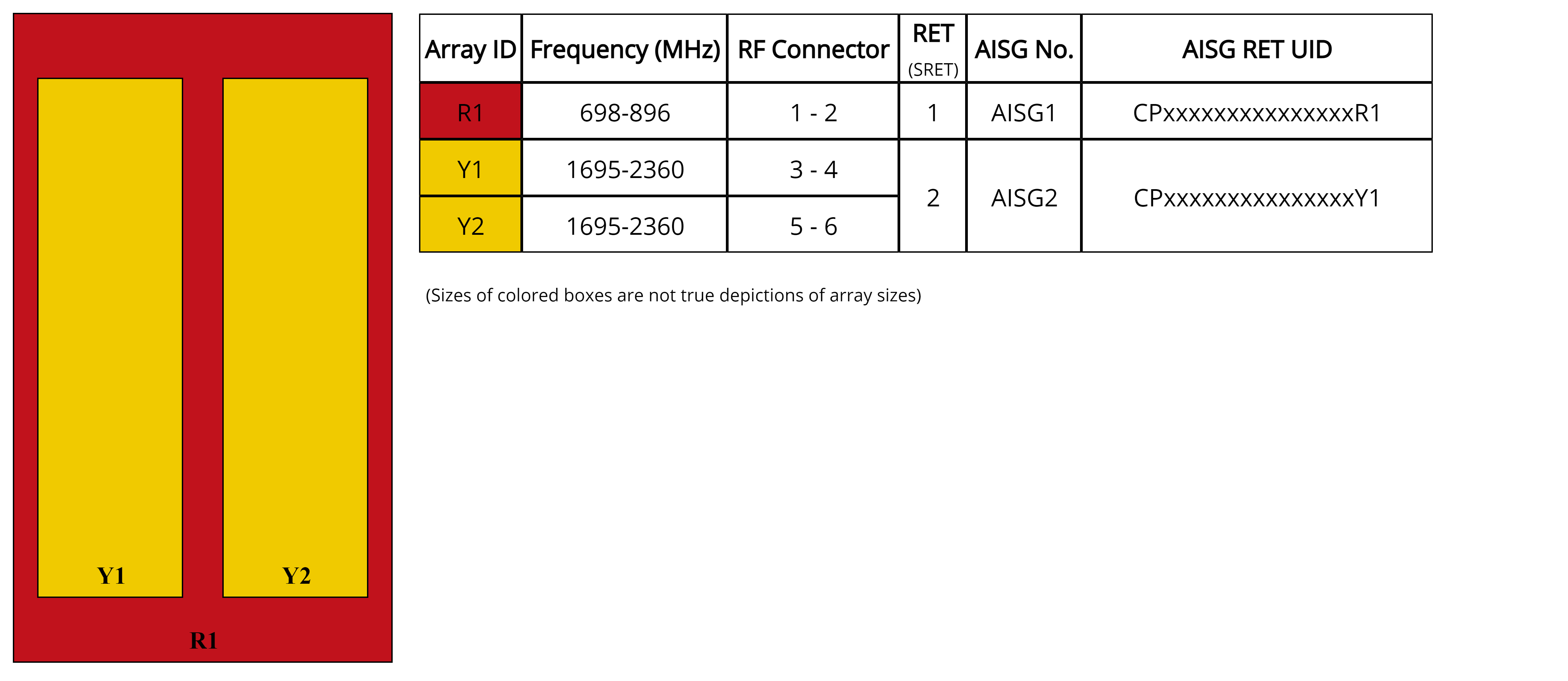 - One LB RET and one HB RET. Both high bands are controlled by one RET to ensure same tilt level for 4x Rx or 4x MIMO