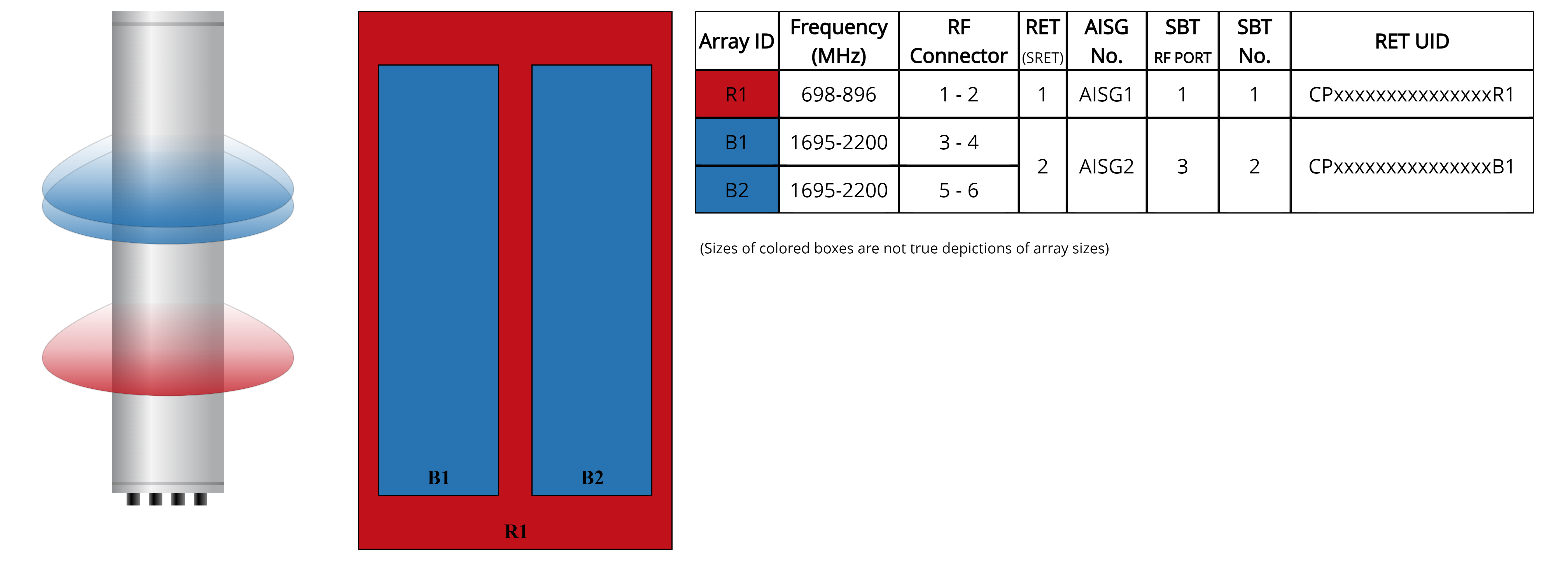 - Internal SBTs allow remote RET control from the radio over the RF jumper cable