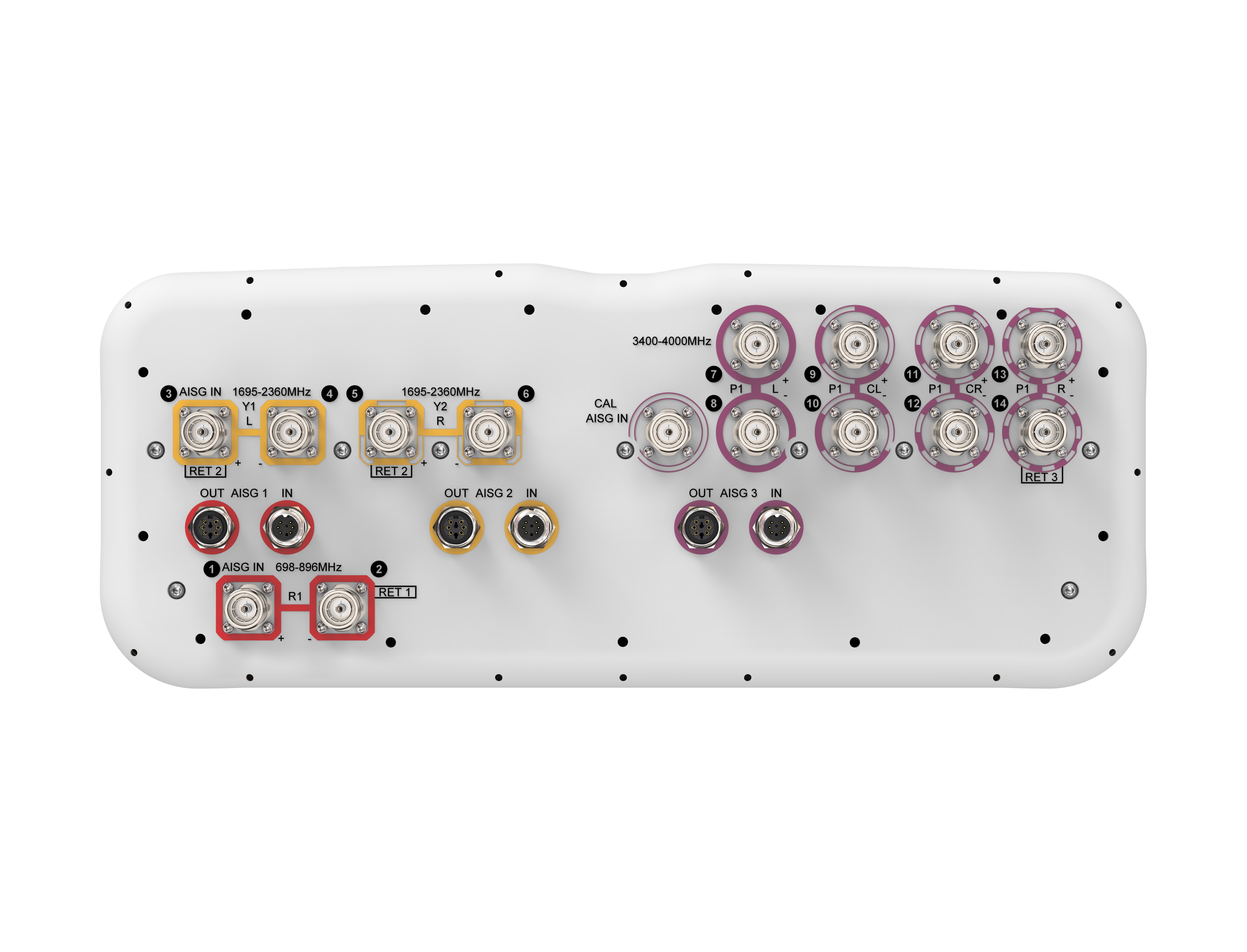 - One LB RET, one MB RET and one HB RET. Both mid bands are controlled by one RET to ensure same tilt level for 4x Rx or 4x MIMO