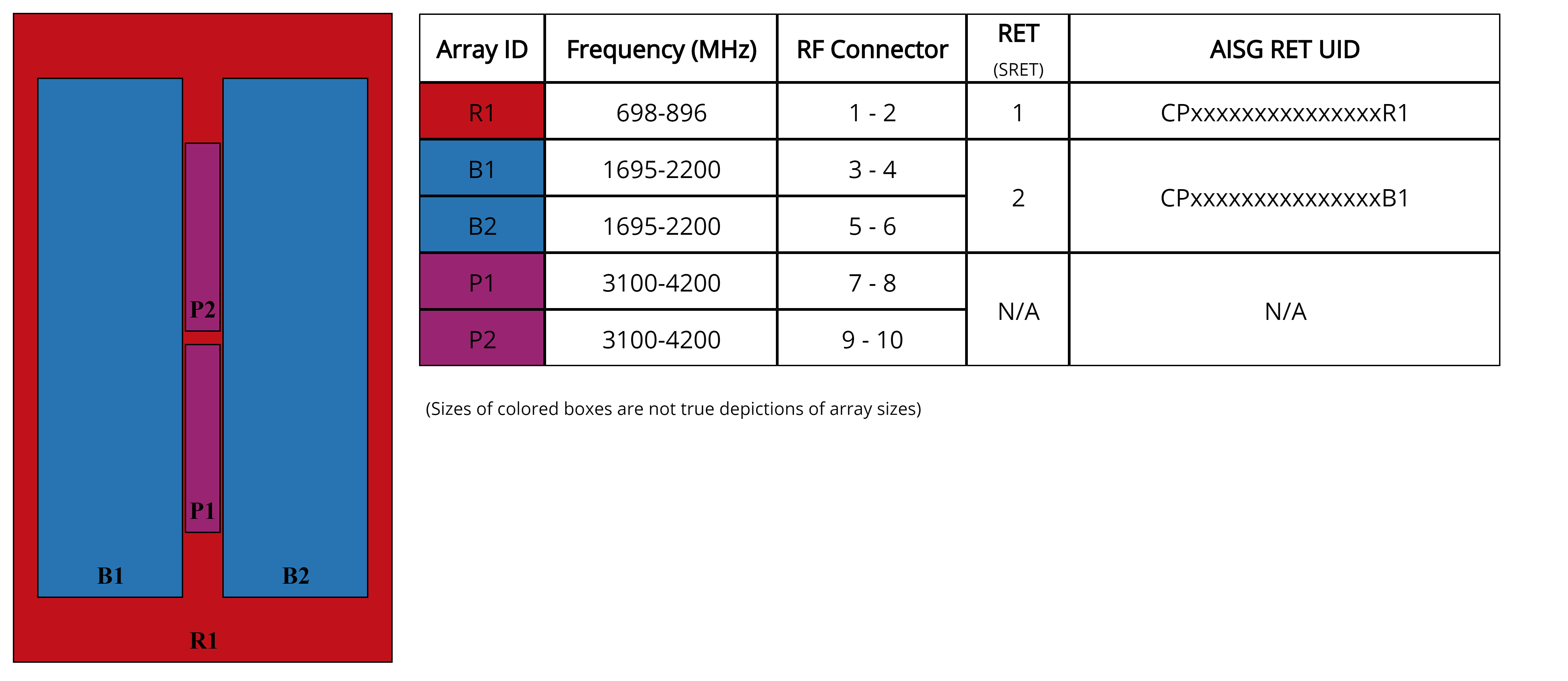 | Internal RET | Low band (1) | Mid band (1) |