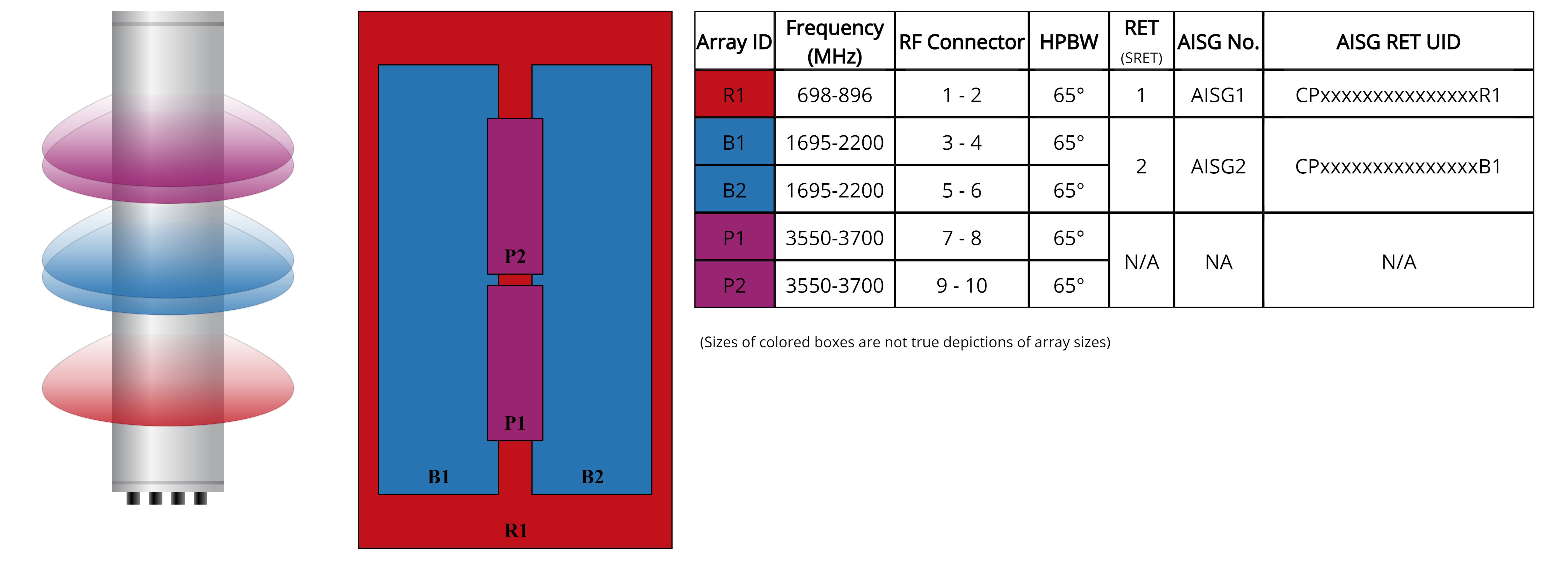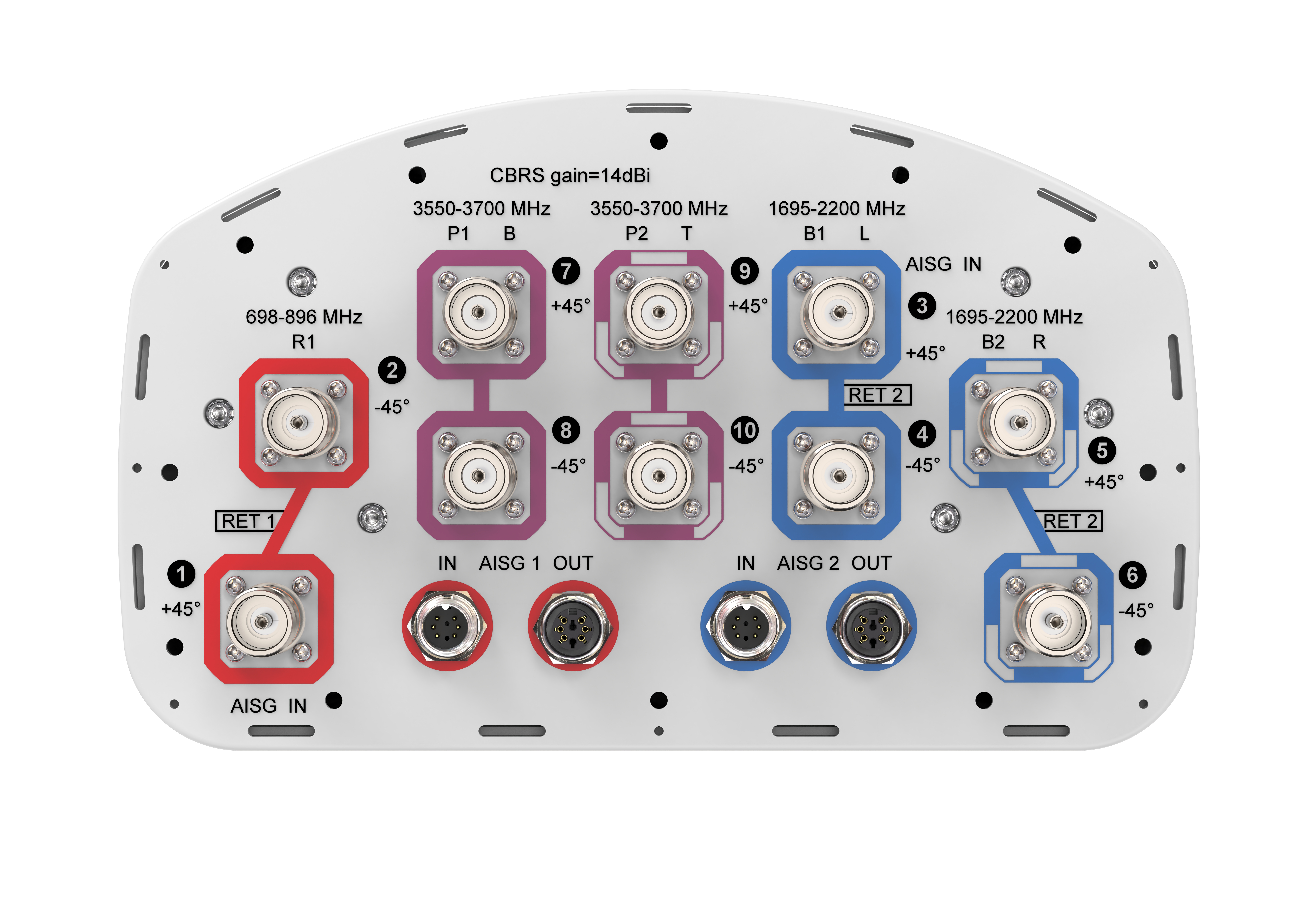 - One LB RET and one MB RET, both Mid bands are controlled by one RET to ensure same tilt level for 4x MIMO
