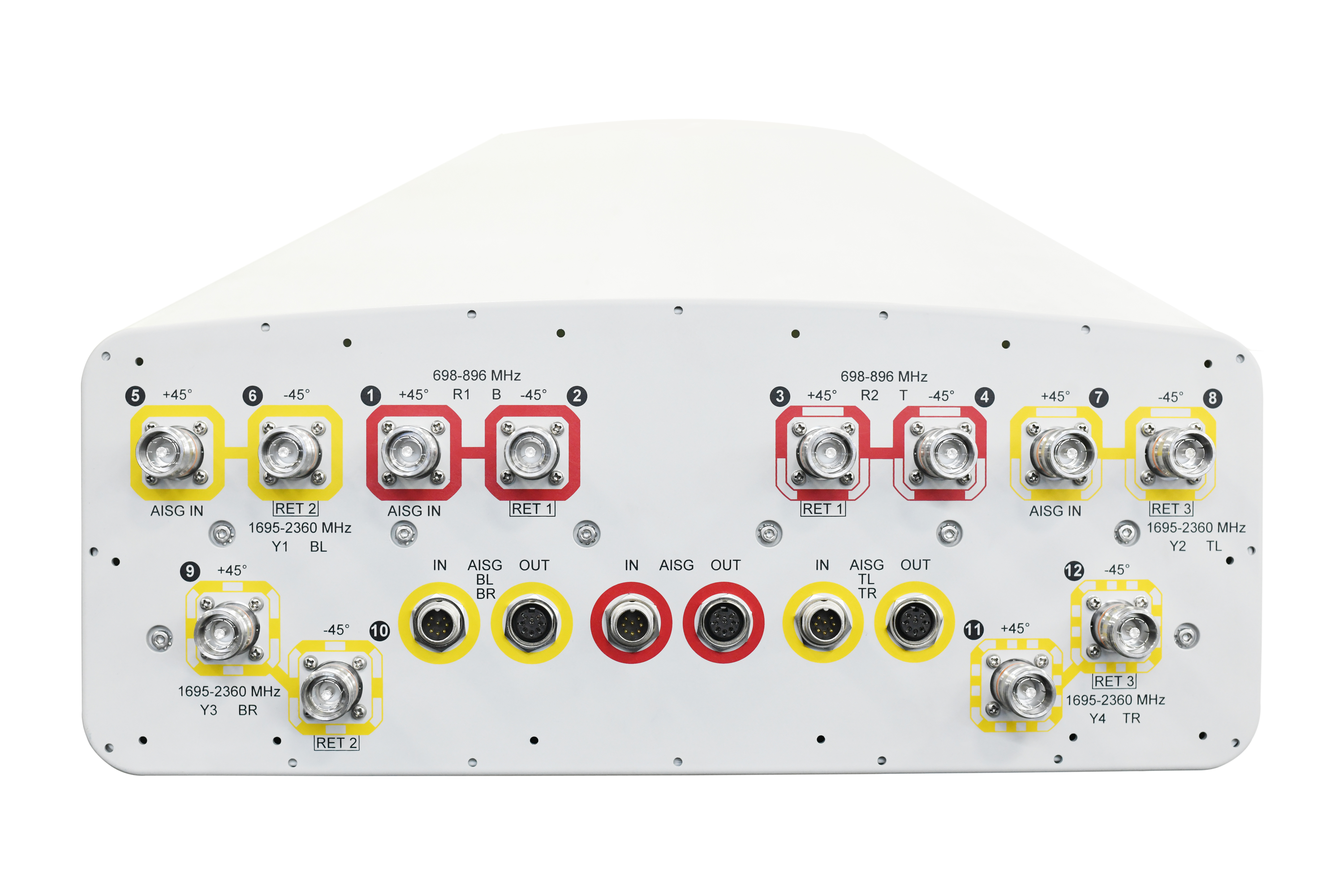 - Features broadband Low Band (698-896 MHz) and High Band (1695-2360 MHz) arrays for 4T4R (4X MIMO) capability for Band 14, AWS, PCS and WCS applications