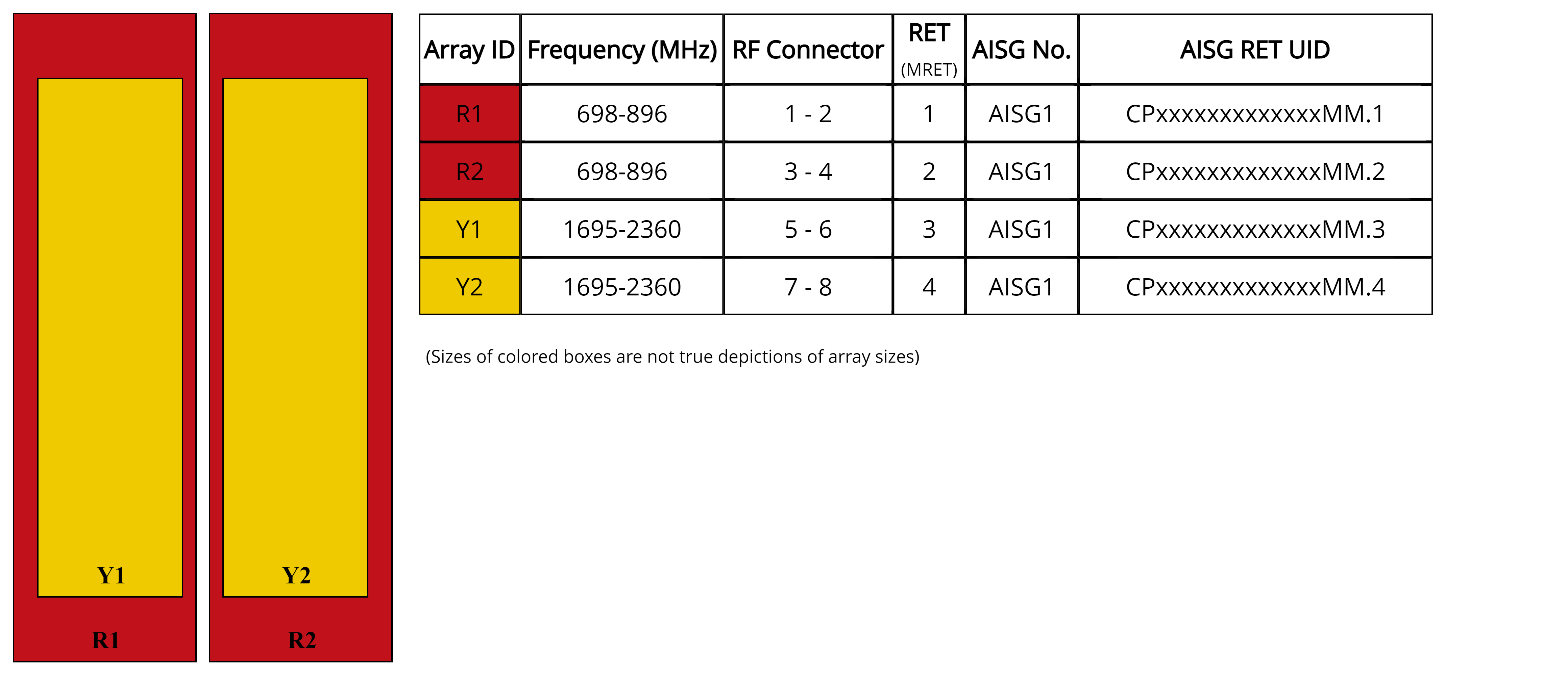 | Internal RET | High band (2) | Low band (2) |