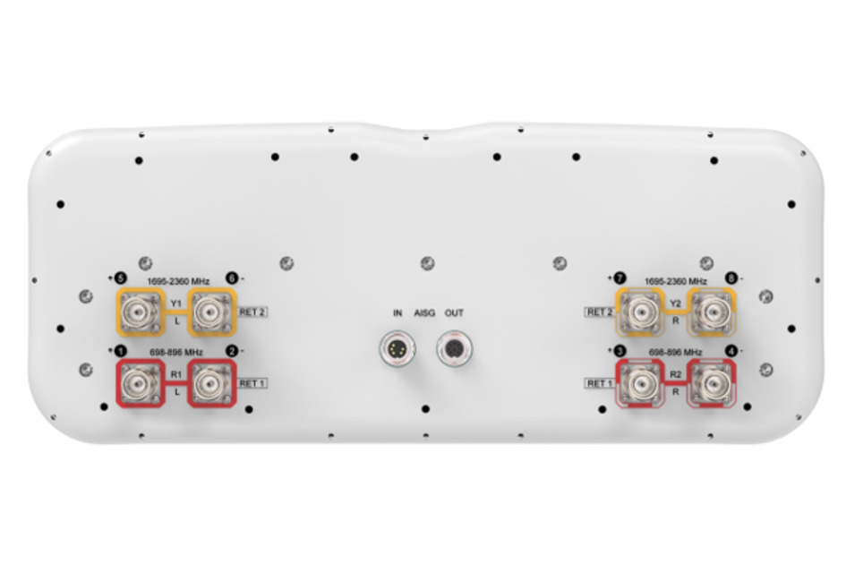 8-port sector antenna, 4x 698–896 and 4x 1695–2360 MHz, 65° HPBW, 2x RETs