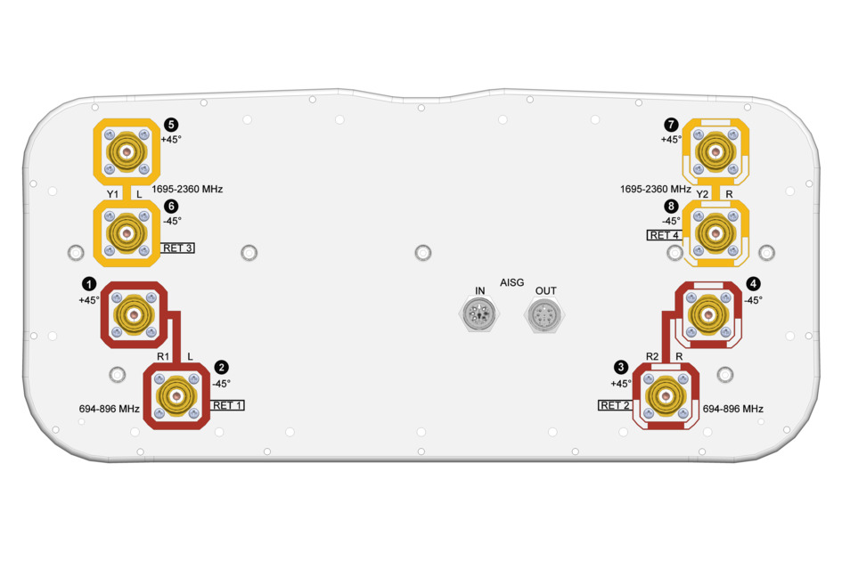 Operating Frequency Band | 694 – 896 MHz | 1695 – 2360 MHz |