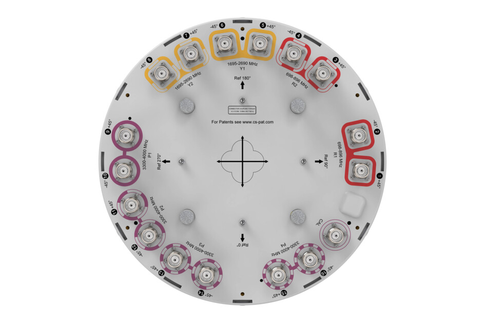 16-port small cell antenna, 4x 698-896, 4x 1695–2690 and 8x Beamforming 3300- 4000, 360° Horizontal Beamwidth, fixed tilt.