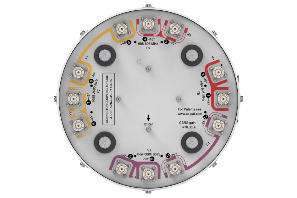 - Fixed tilt of 6 degrees for mid band and high band arrays