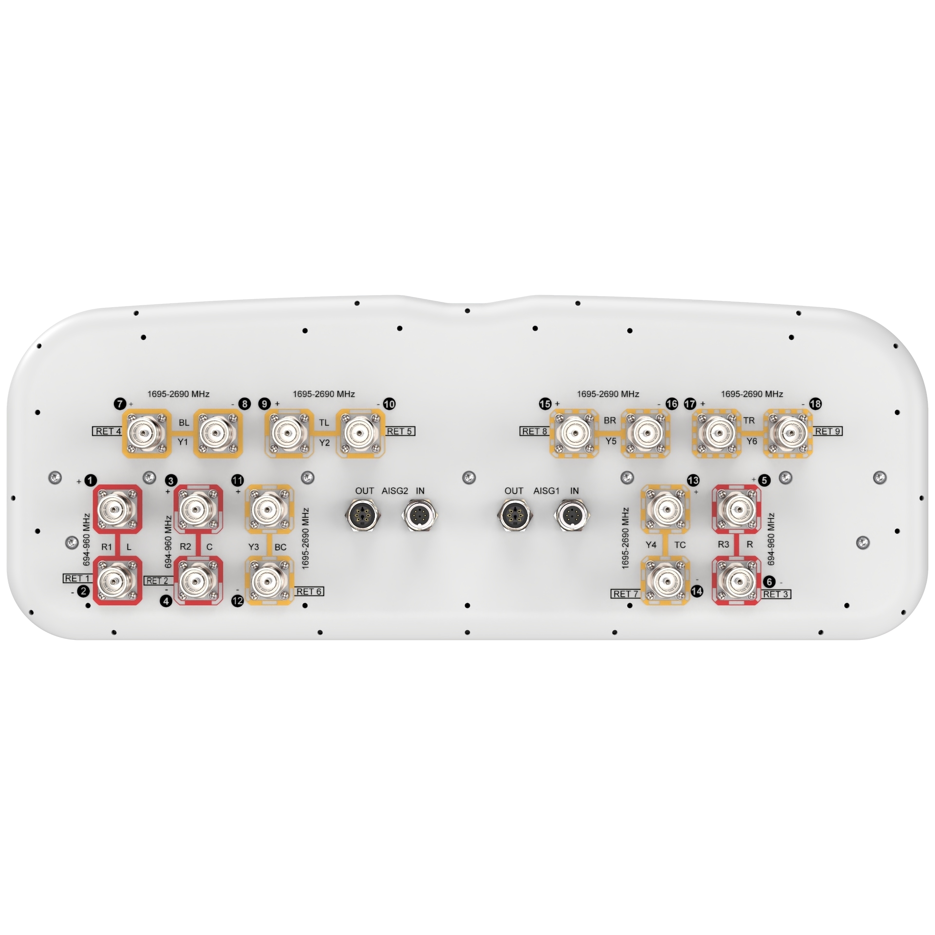 18-port sector antenna, 6x 694-960, 12x 1695-2690 MHz, 65° HPBW, 9xRET