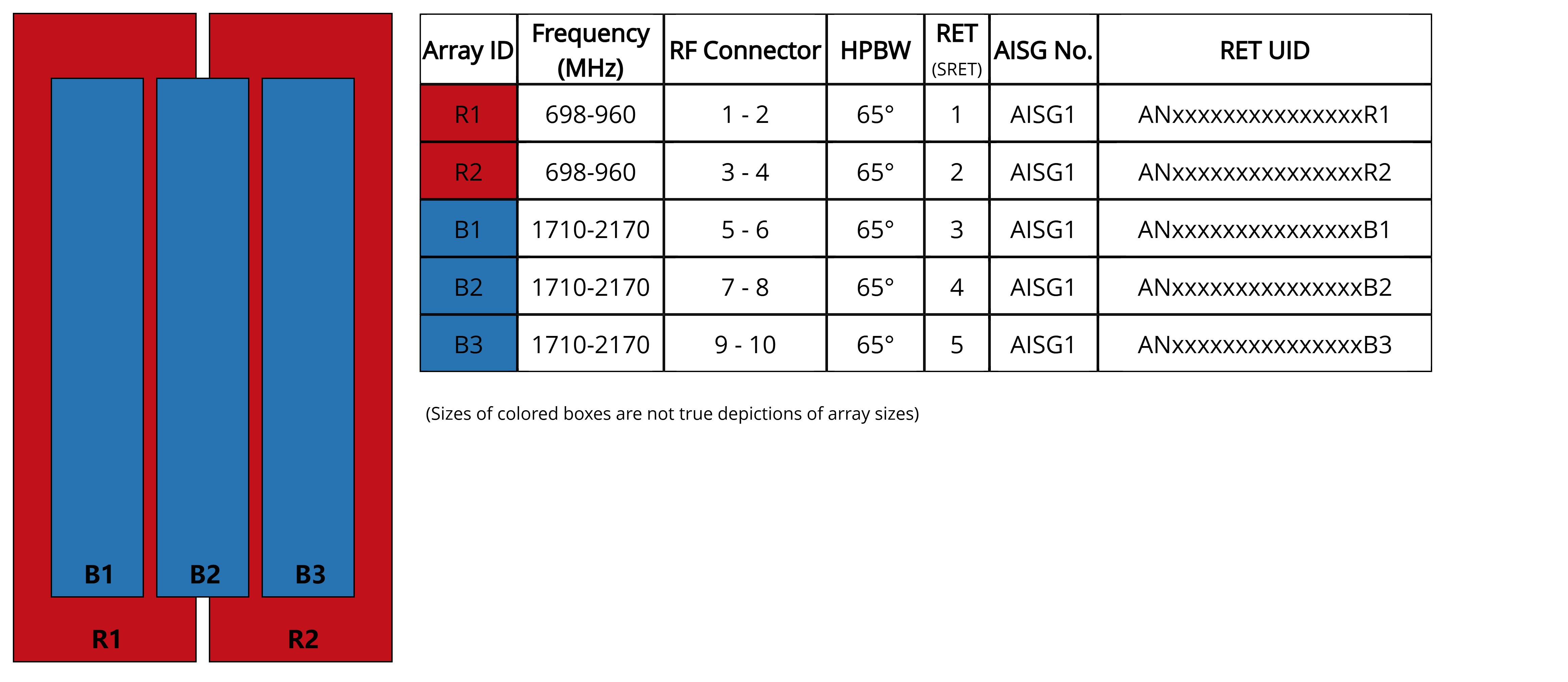 | Internal RET | Low band (2) | Mid band (3) |