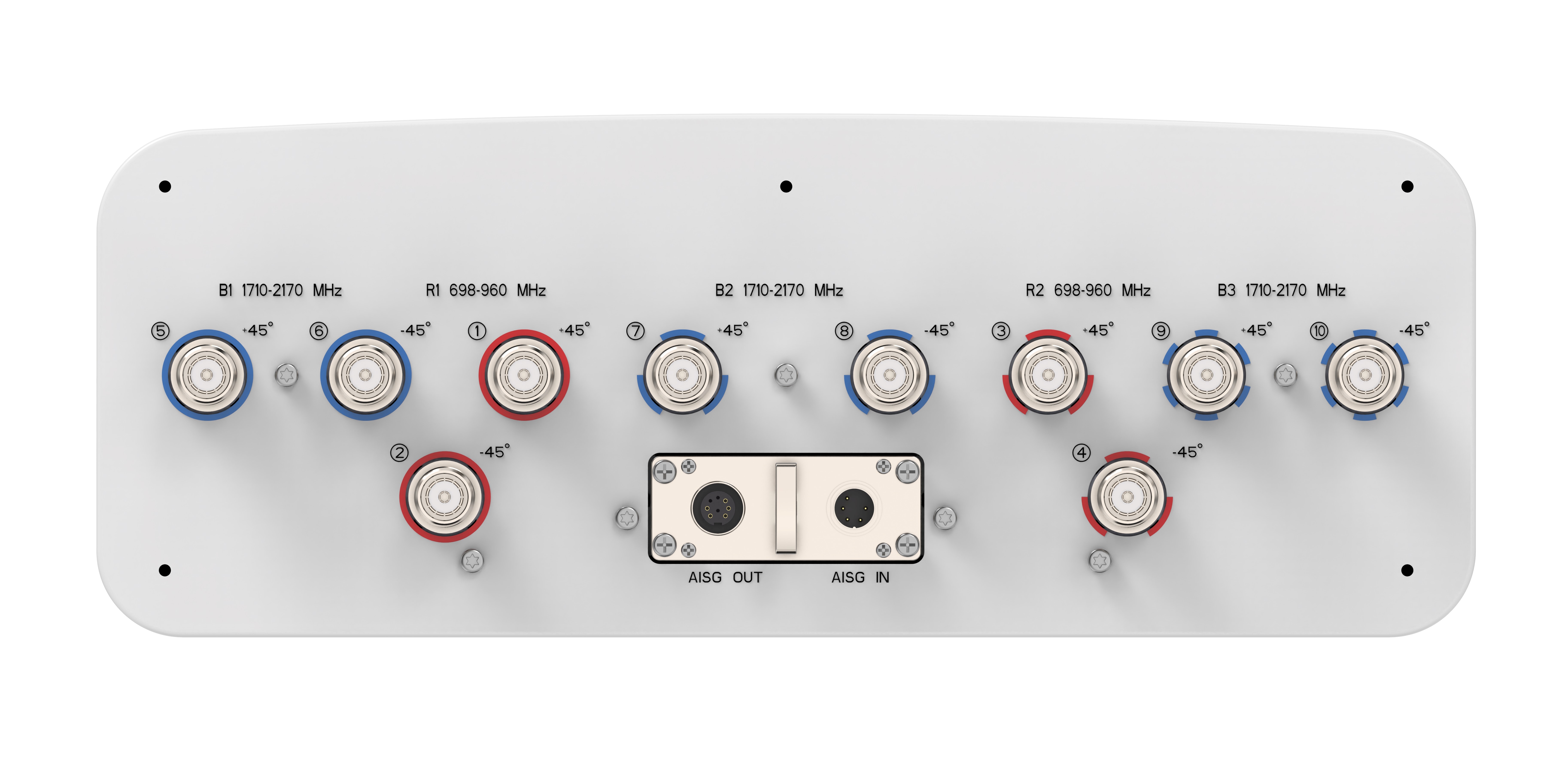 10-port sector antenna, 4x 698–960 and 6x 1710–2170 MHz, 65°HPBW, 5x RET