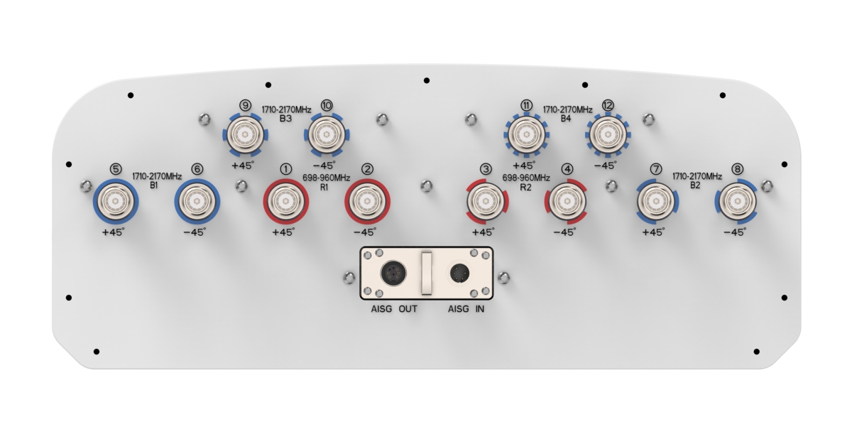 12-port sector antenna, 4x 698–960 and 8x 1710–2170 MHz, 65°HPBW, 6x RET