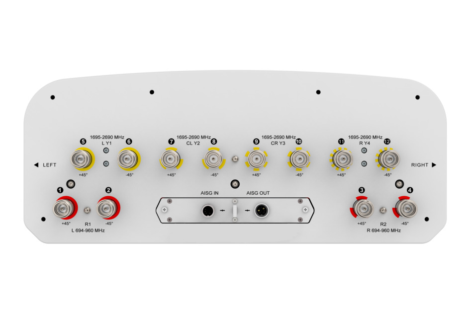 12-port sector antenna, 4x 694–960 and 8x 1695–2690 MHz, 65° HPBW, 6x RET.