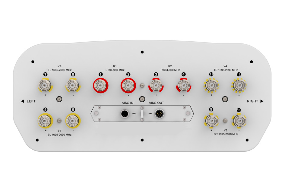 12-port sector antenna, 4x 694–960 and 8x 1695–2690 MHz, 65° HPBW, 6x RET
