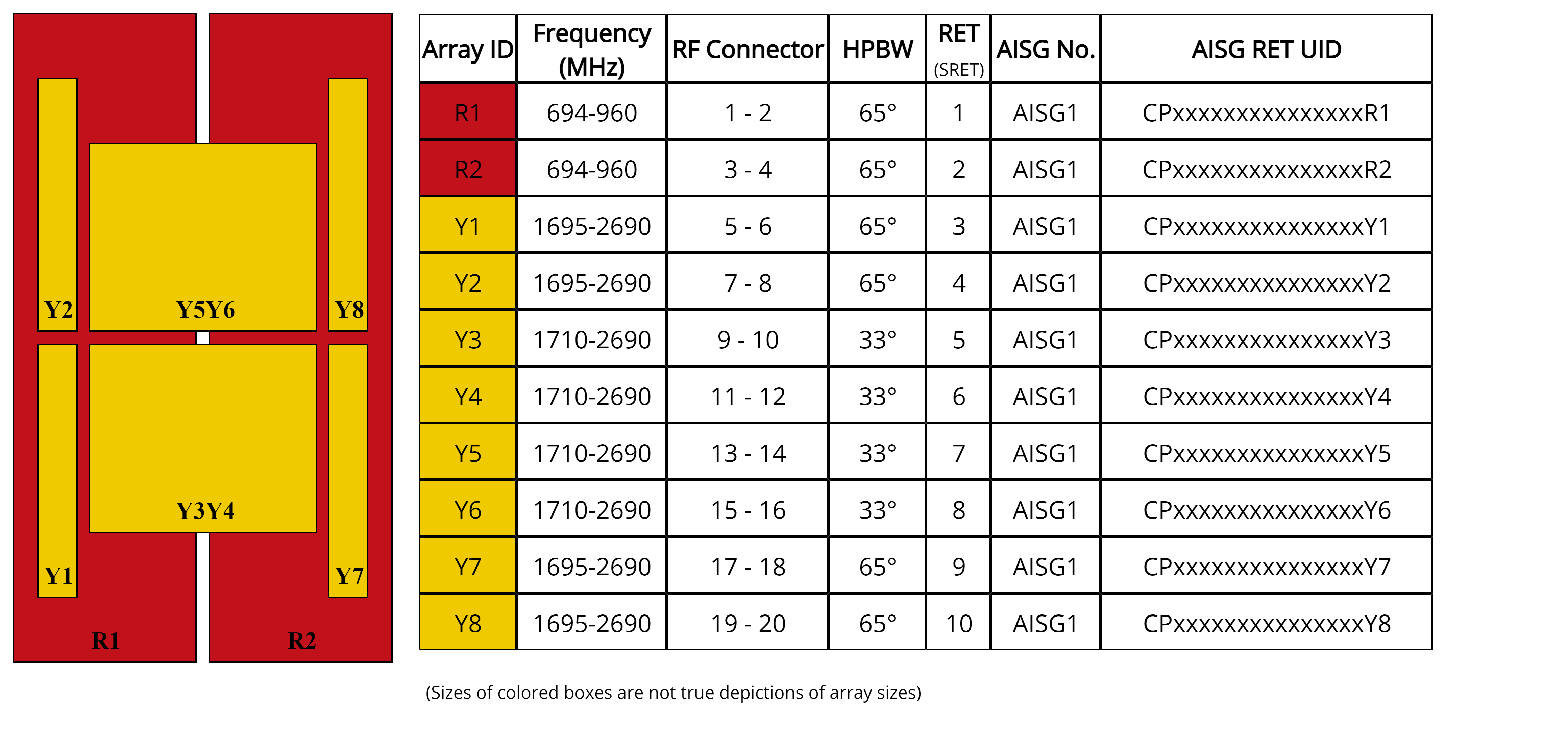 | Internal RET | High band (8) | Low band (2) |