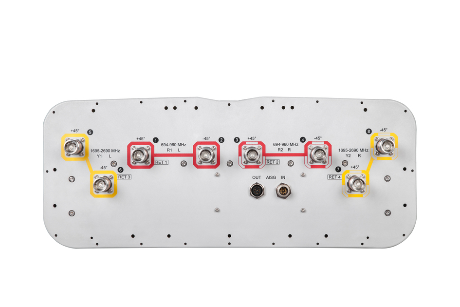 8-port sector antenna, 4x 694–960 and 4x 1695–2690 MHz, 65° HPBW, 4x RET