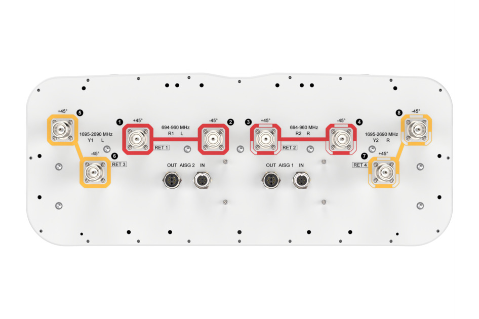 8-port sector antenna, 4x 694–960 and 4x 1695–2690 MHz, 65° HPBW, 4x RET