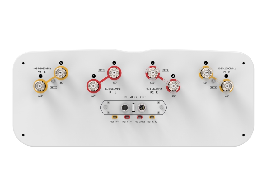 8-port sector antenna, 4x 694–960 and 4x 1695–2690 MHz, 65°HPBW, 4x RET