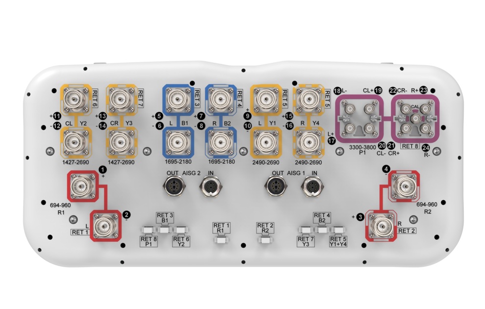 - Includes eight Internal RET’s. All 2490-2690MHz (Y1&Y4) ports share common RET
