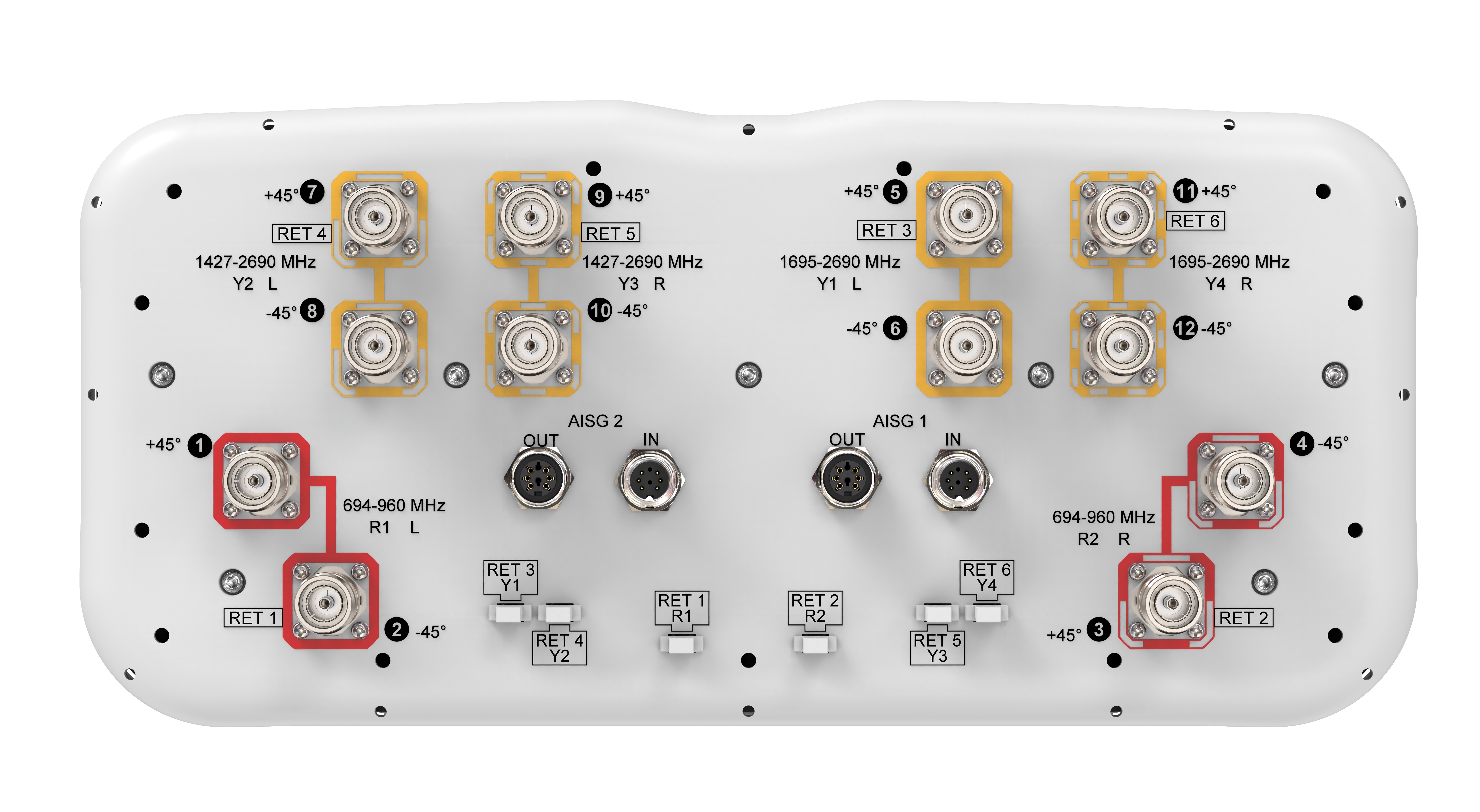 - Supports re-configurable antenna sharing capability enabling control of the internal RET system using up to two separate RET compatible OEM radios (LookupValue_1605944369041106)