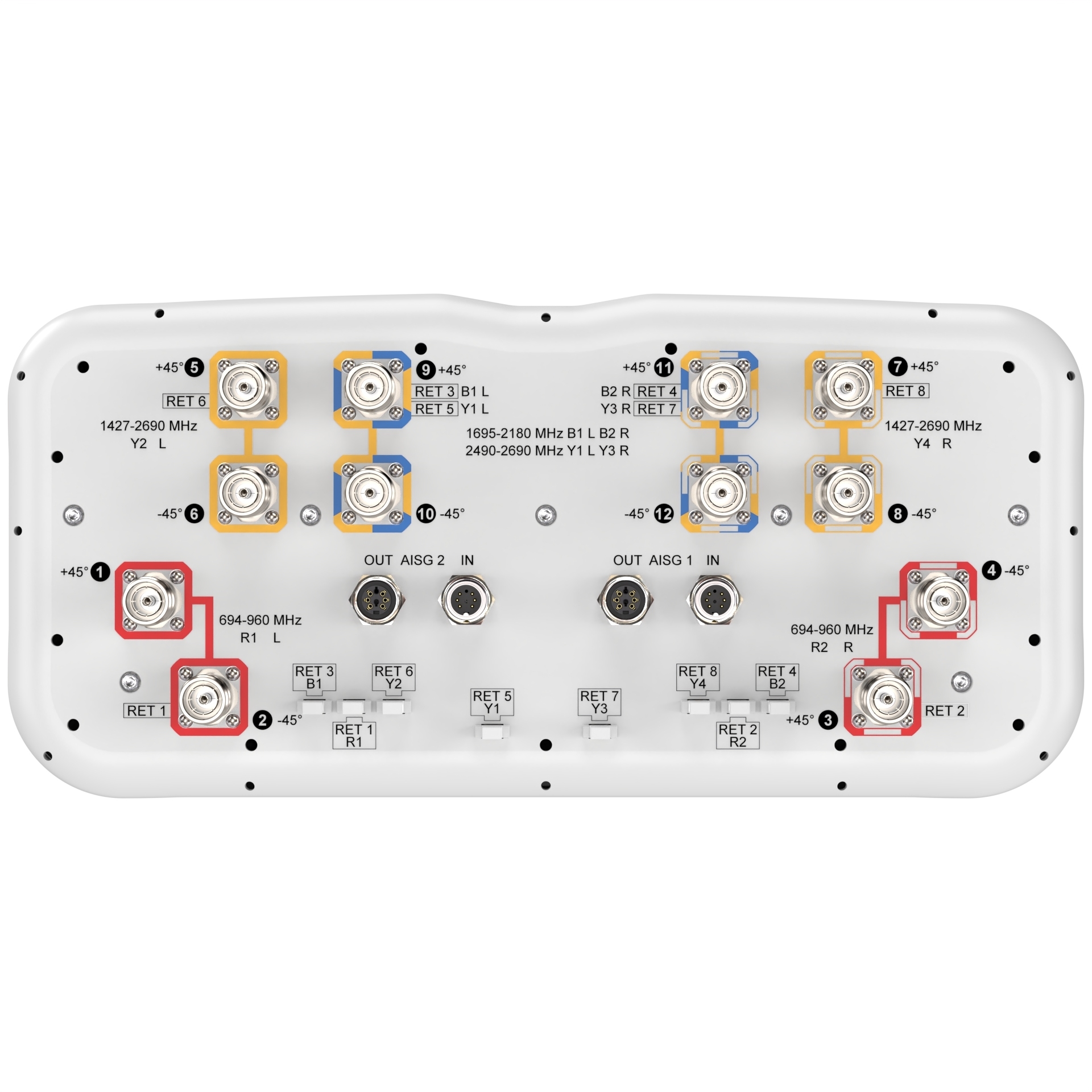 12-port sector antenna, 4x 694–960, 4x 1427–2690 and 4x 1695-2690 MHz, 65° HPBW, 8x RET