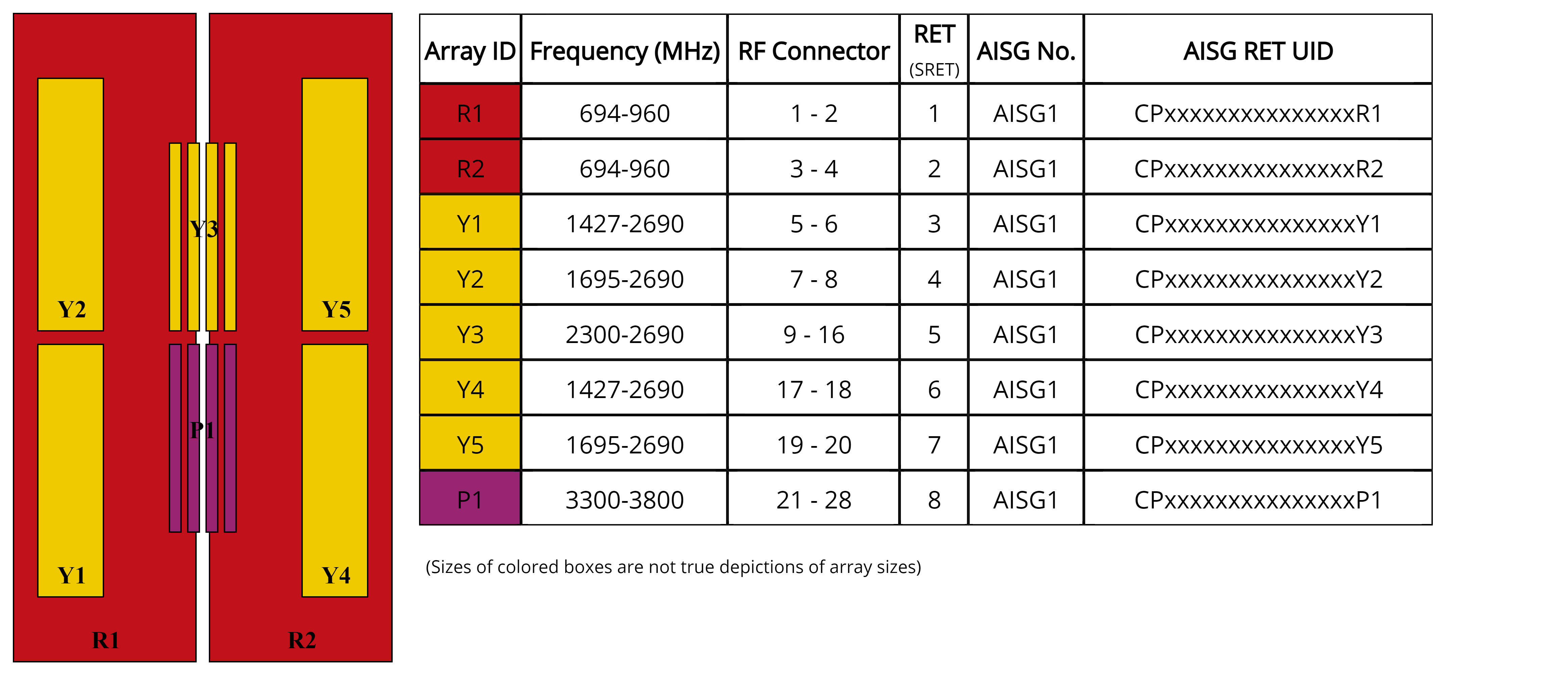 | Internal RET | High band (2) | Low band (2) | Mid band (4) |