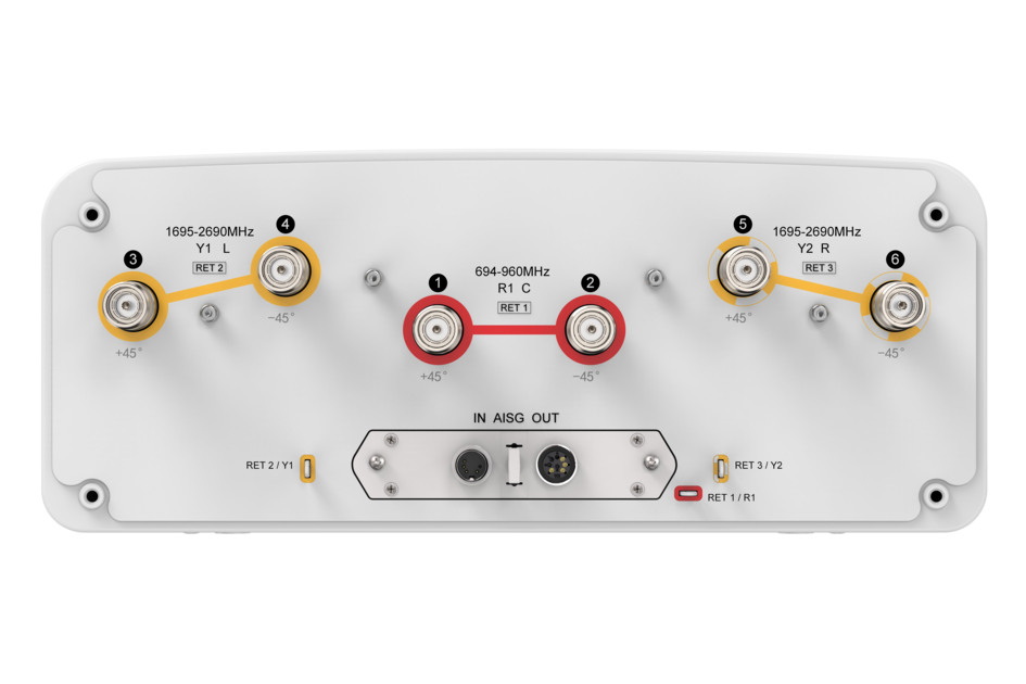 6-port sector antenna, 2x 694-960 and 4x 1695–2690 MHz, 65° HPBW, 3x RET