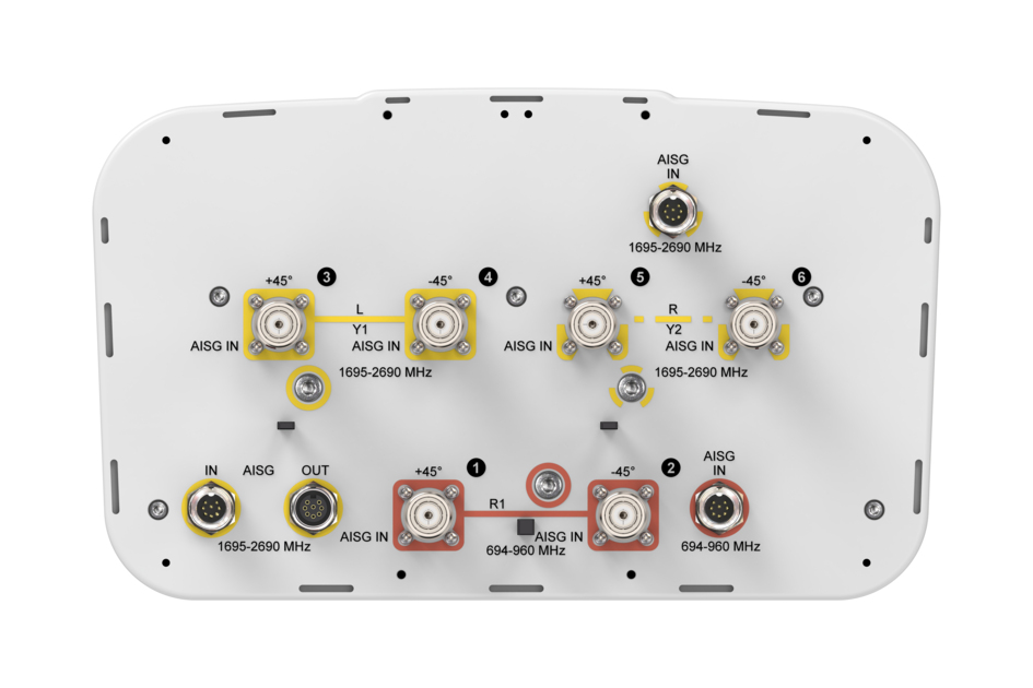 - Internal RET actuators are connected in SRET configuration, with dedicated AISG ports for each band
