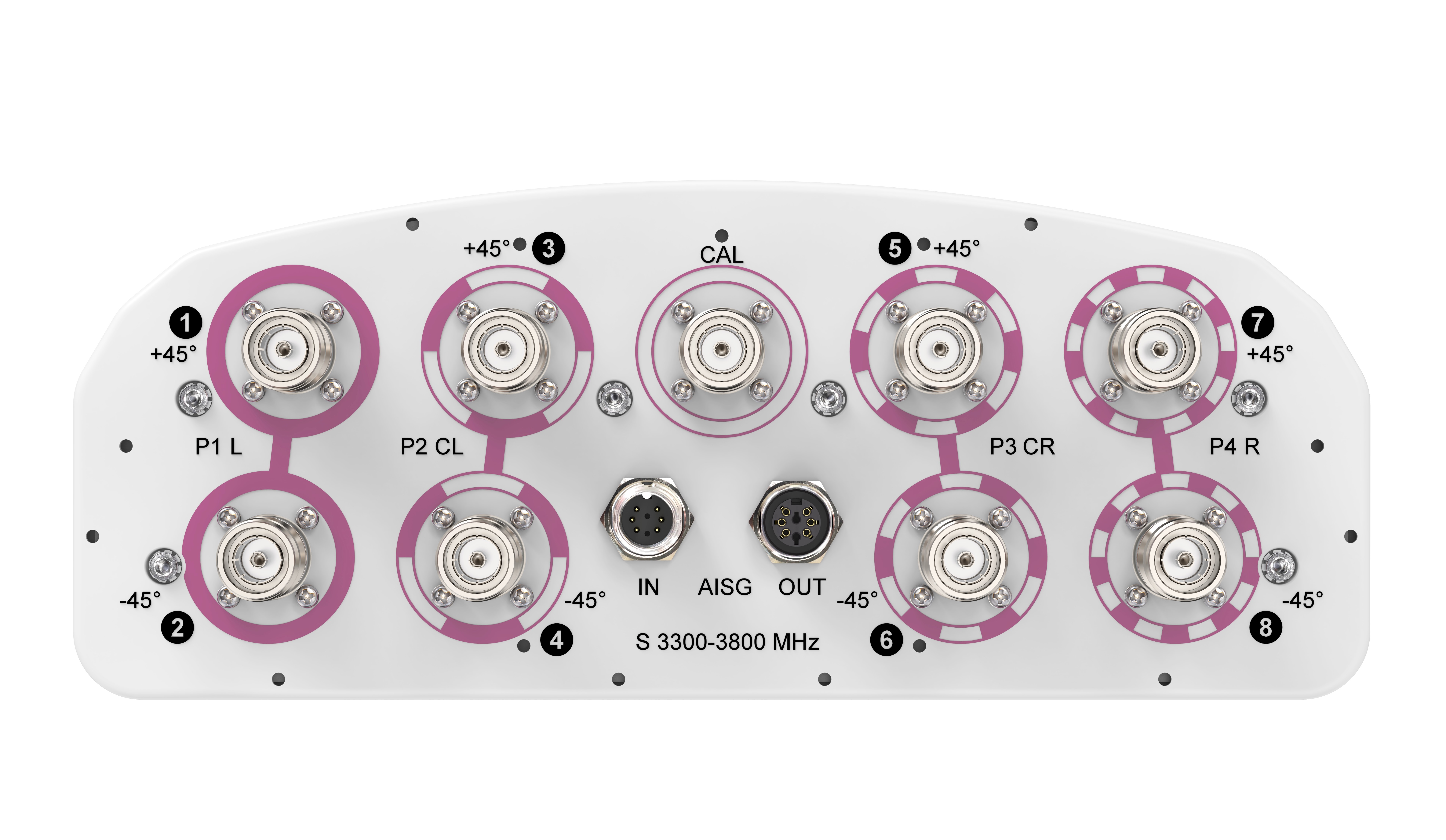 8-port Planar Array Antenna, 3300–3800 MHz, 90° HPBW, 1x RET