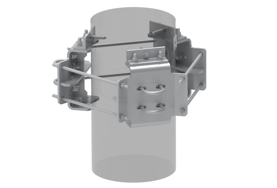 Three Sector Ring Mount for Wood Poles 6" to 13" OD - includes U-Bolts for 2-3/8" Pipe (Pipe not included)