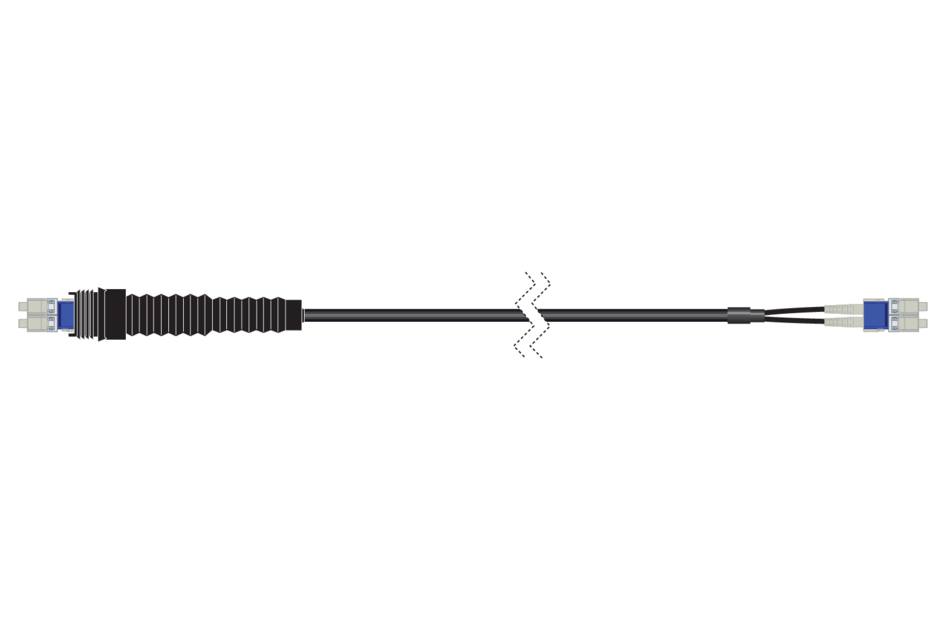 HELIAX® Discrete Fiber Jumper, 2F Multi Mode (OM2) fiber, 5.0mm LSZH jacket cable, terminated with Clipped. duplex LC connector at both ends, and pre-install NOKIA rubber at both ends.