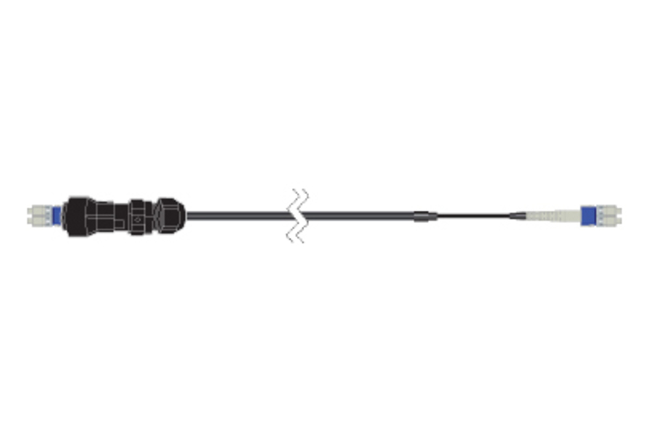 HELIAX® Discrete, 2 single mode fiber, 7 mm LSZH cable. End 1: DLC for RRU. End 2: DLC for BBU. Includes installed weatherproofing shroud