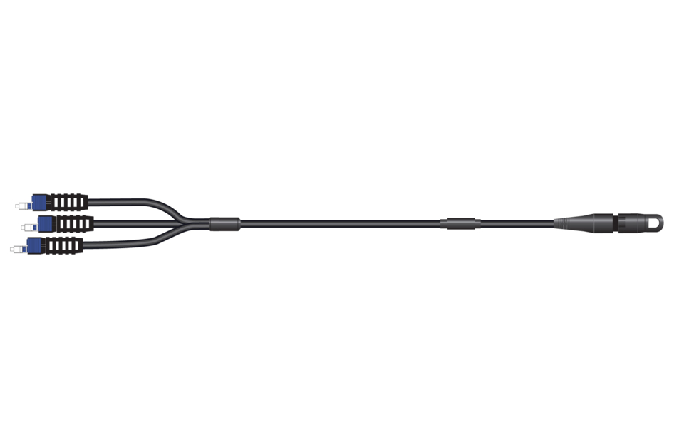 HELIAX® Discrete ruggedized Bi-Di Drop cable assembly, 3 Single Mode fiber, SLC to OptiTip Compatible connector, LSZH cable, staggered breakout for conduit pulls
