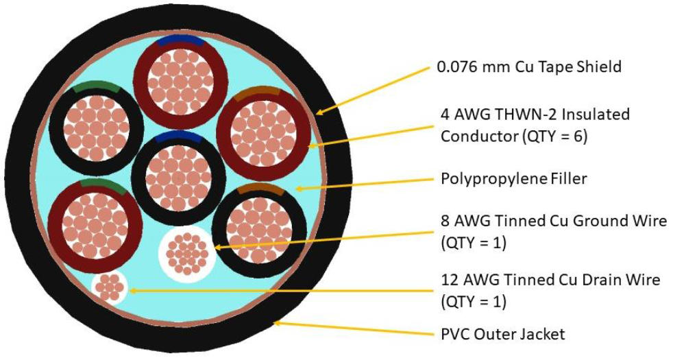 HELIAX® Remote Radio Head Power Cable, 6 Conductor 4 AWG with Shield. Includes One Conductor Black w/