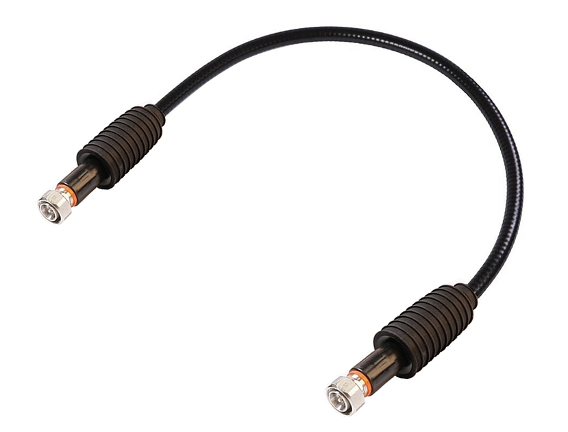 D-CLASS FSJ1-50A SureFlex® Jumper with interface types 4.3-10 Male and 4.3-10 Male with HELIAX® SureGuard weatherproofing boot, variable length.