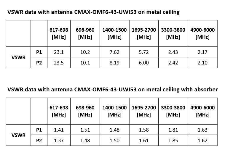 Omni Absorber ground plane to improve VSWR on metal ceilings