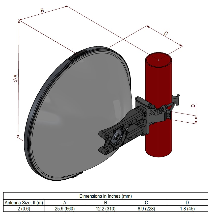 | Compatible Mounting Pipe Diameter | 48 mm–120 mm | 1.9 in–4.7 in |